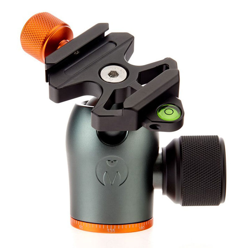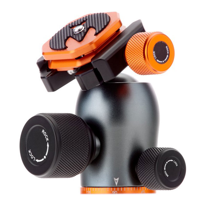 The 3 Legged Thing AirHed Pro features a knurled knob that is used to operate the ball head. The ball can be turned in different positions and the whole head can be rotated 360 degrees on the base. With a copper control knob you can fix the clamp, so that the camera is held firmly in place. The tripod head is equipped with a spirit level so that your photos always have a perfectly straight horizon. ,