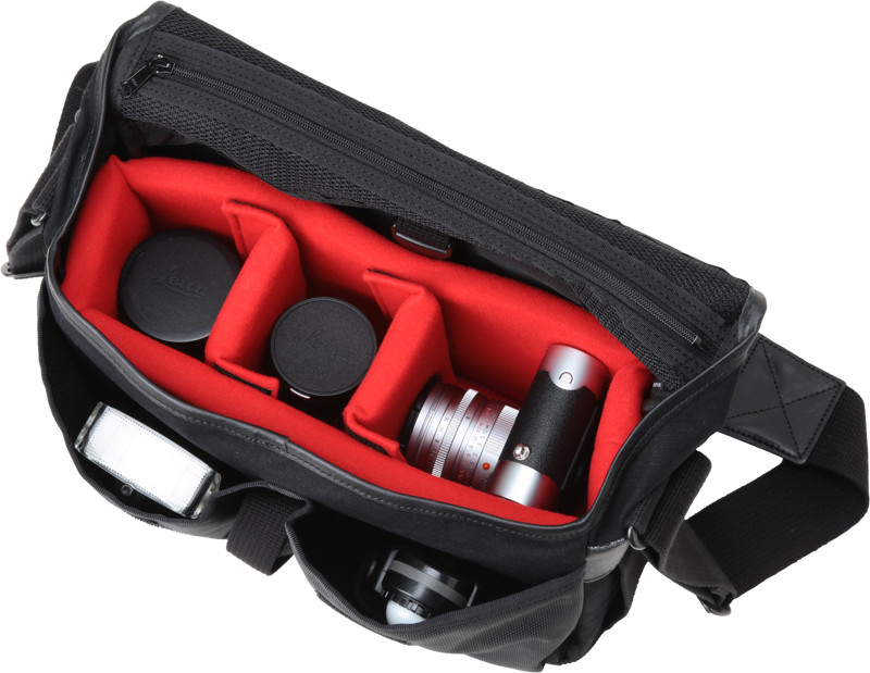 Brašna, kterou lze nosit na rameni. Vejde se do ní jedno tělo fotoaparátu a dva výměnné objektivy.