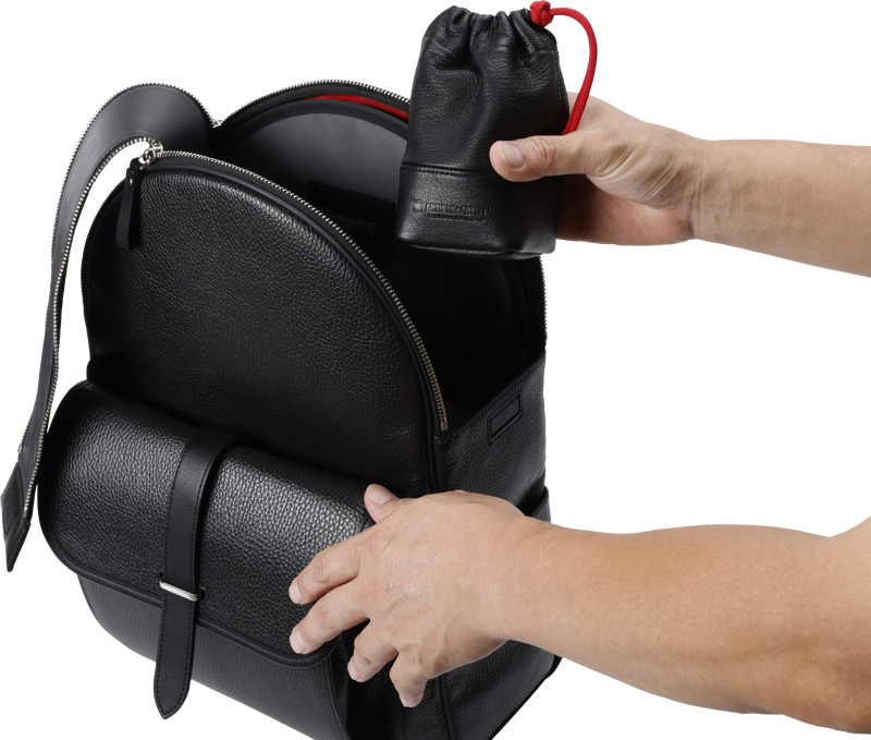 Uvnitř pouzdra je navíc umístěna vyjímatelná polštářová základna ve tvaru koblihy s výřezem, vhodným pro zadní krytku objektivu Leica M. Po vyjmutí této polštářové základny lze do pouzder samozřejmě ukládat i objektivy jiných výrobců.