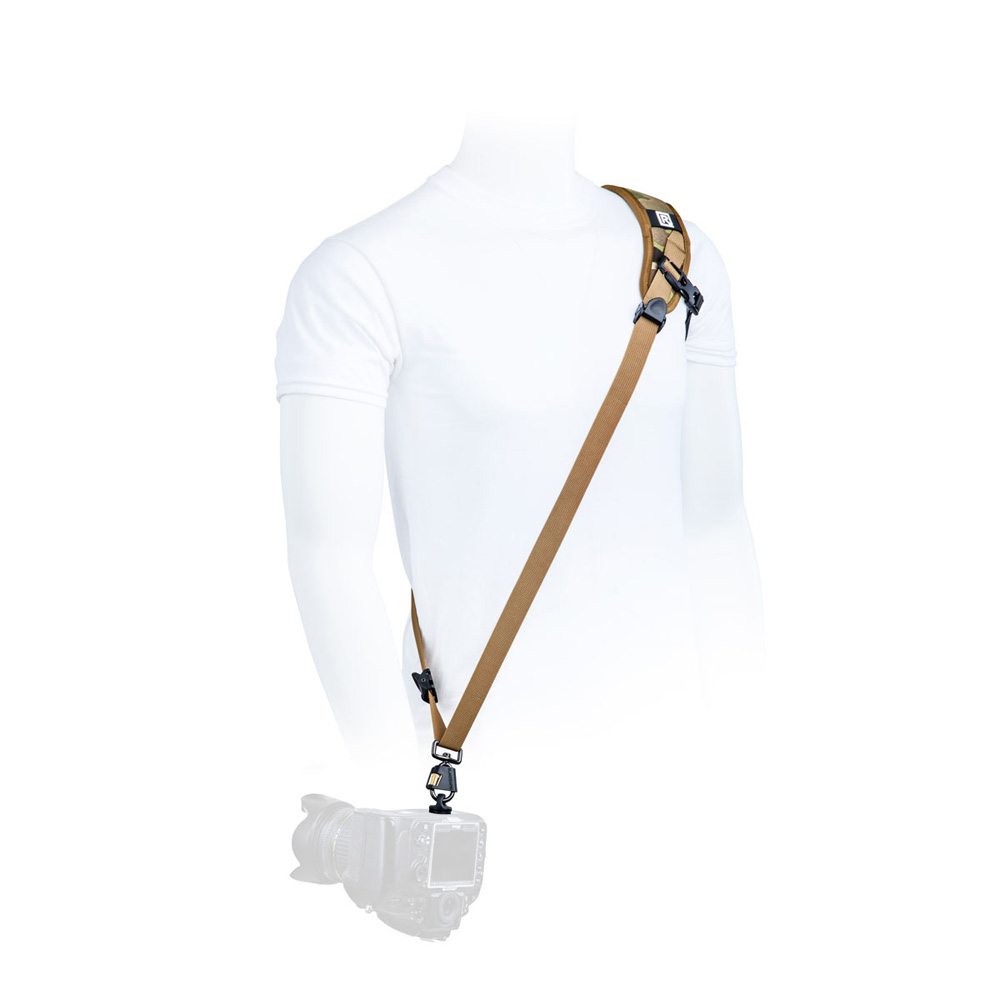 The Sport X Extra Multi Terrain is a sturdy sling strap that is worn crossbody from the left shoulder with the camera on the right hip. Spring loaded Cam Locks keep the camera securely in place, while the removable forearm stabiliser prevents slipping off the strap. The comfortable shoulder pad made of nylon monomesh, TPE foam and polyester distributes the weight evenly for long lasting carrying comfort. With an adjustable length of up to 167 cm and a weight of only 190 grams, this strap is ideal for photographers who want to combine mobility and stability.,