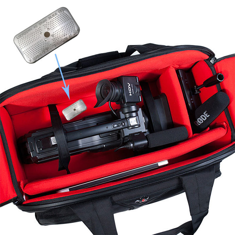 Silikagelové pouzdro Caruba je praktická a malá hliníková krabička s granulemi silikagelu, která chrání vaše cenné vybavení před vlhkostí, rzí a plísní. Ideální pro použití ve fotografické brašně nebo batohu. Kuličky mají oranžovou barvu, která se v případě potřeby reaktivace změní na zelenou. Krabičku můžete reaktivovat tak, že ji zahřejete na tři hodiny v troubě při teplotě 120 stupňů Celsia.