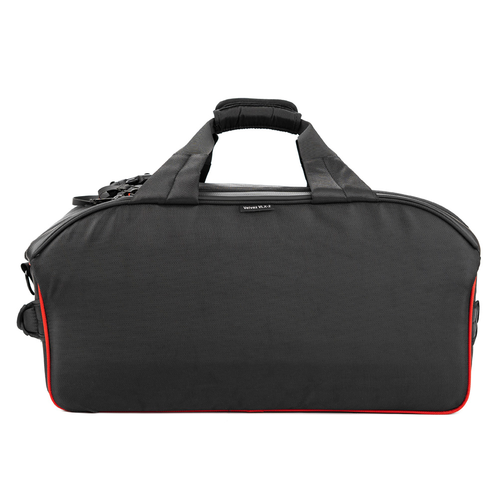 The Caruba Velvex VLX 2 is a sturdy bag with enough storage space and a detachable shoulder strap. In addition to the double handle on top, two sturdy handles are attached to the side of the bags. The front pocket can be opened with the zip and it is divided in a big compartment with three small pockets and two mesh pockets for accessories. The main compartment can be opened and closed with the double zip and Velcro closure. Only YKK zips from high quality are being used and they are waterproof. The main compartment is divided in three sections, but has small pockets on the side for cables or a small laptop. The dividers can be adjusted to your own wishes. Your equipment is easy to find in the bag thanks to the red lining.