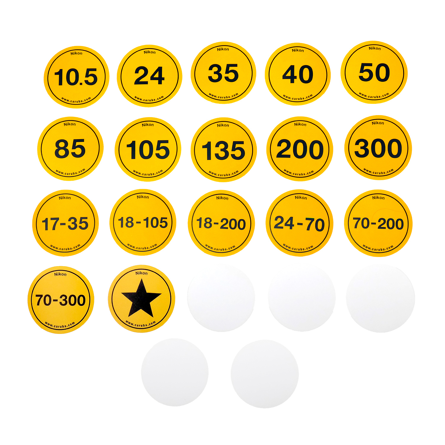 Pre printed stickers with the most popular focal lengths