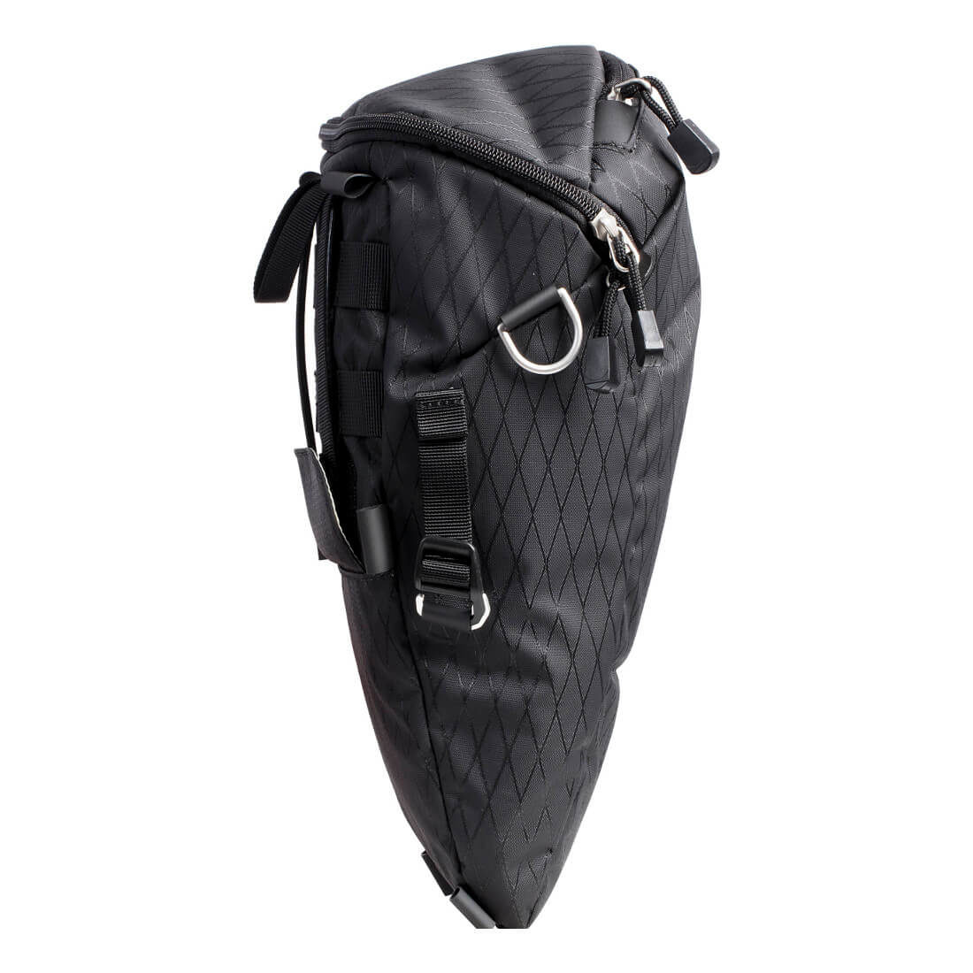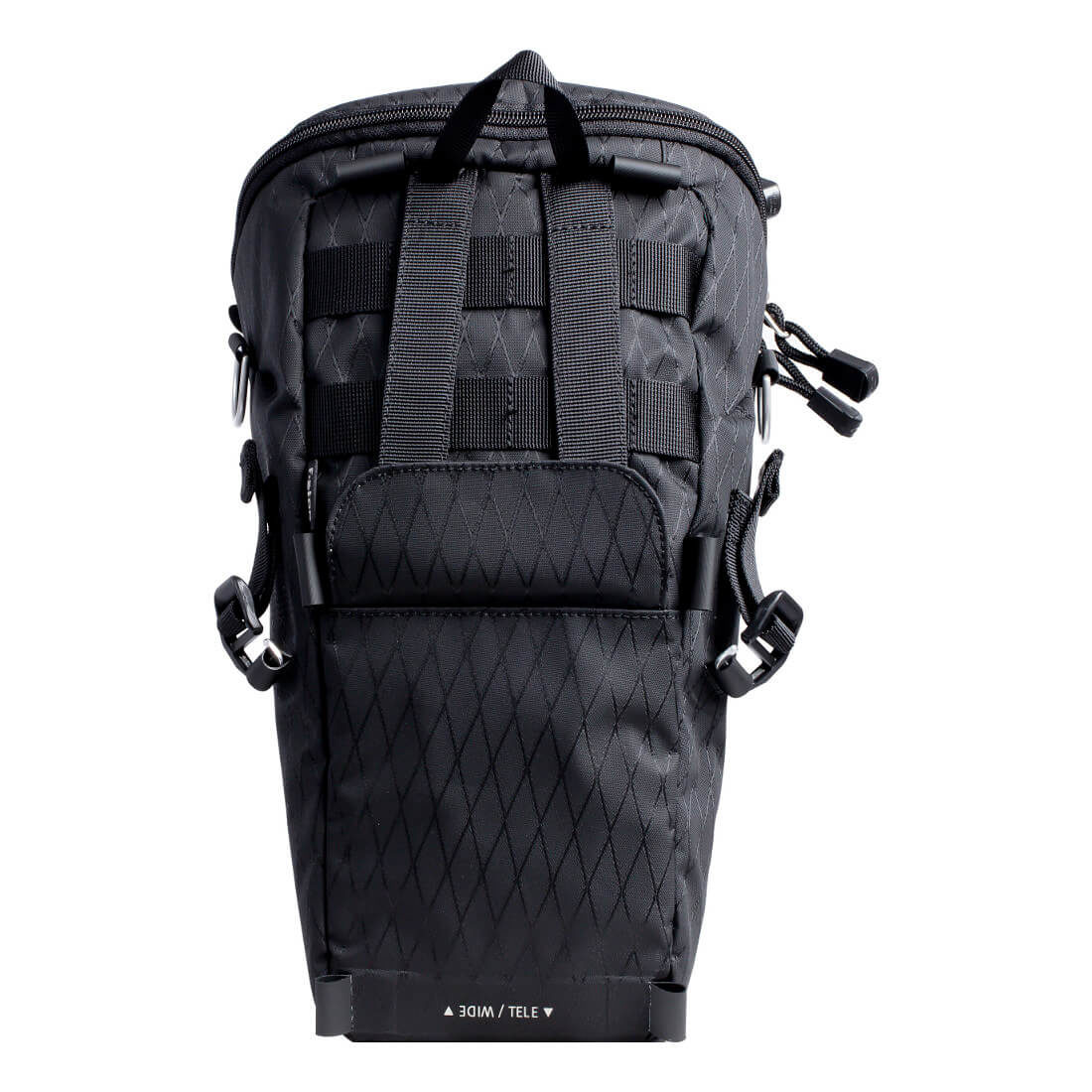 You can reduce the depth of the bag from 32 centimeters to 22 centimeters. You do this by rolling up the bottom of the bag and attaching it to the sturdy hooks on the side. For example, your snout bag is also suitable for a camera with a smaller lens and you no longer need an extra bag! You can remove two soft inserts to roll up the bag tightly. ,