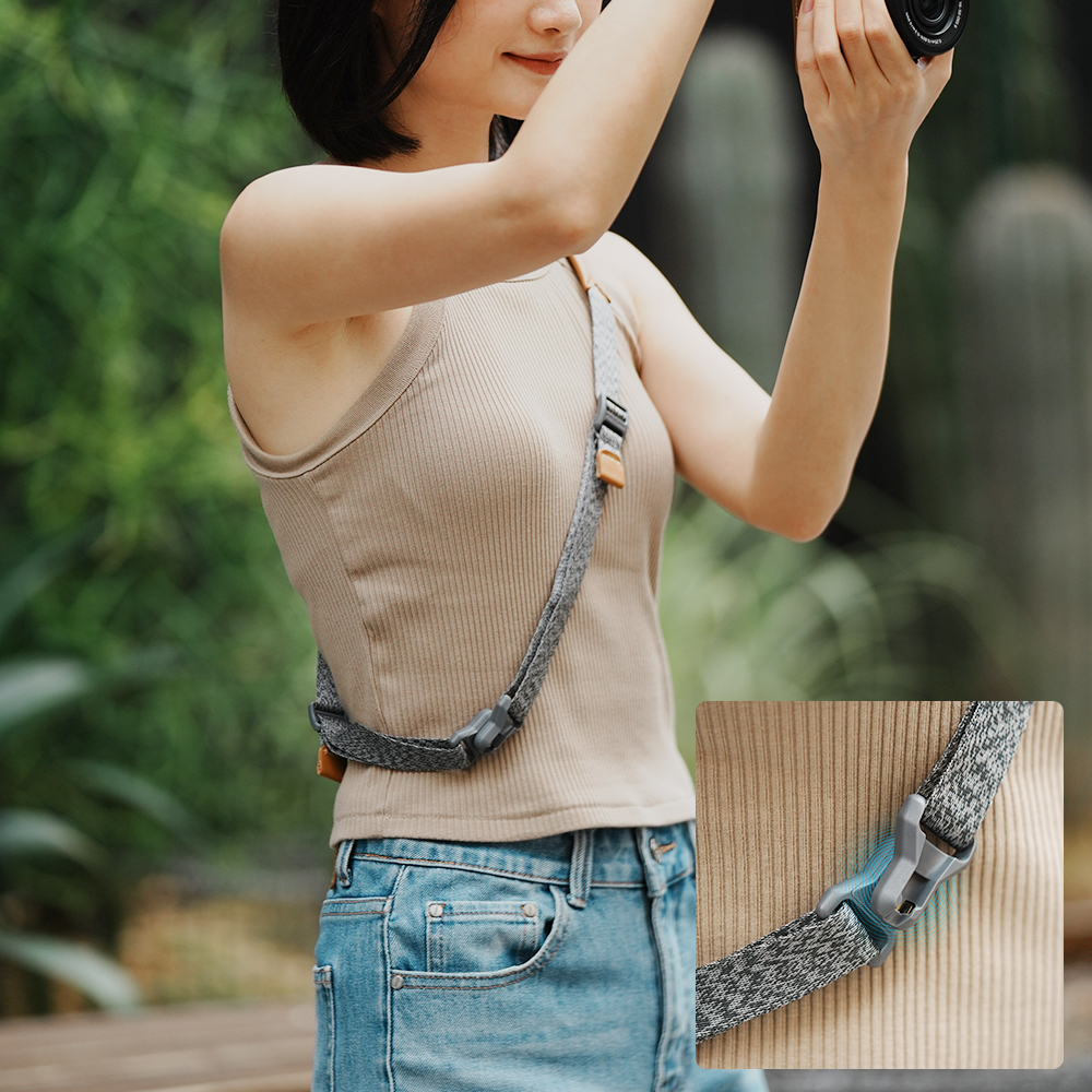 The Falcam Maglink Quick Magnetic Buckle Shoulder Strap Lite V2 (Grey) combines style with speed. This strap is designed for creators who want to have their camera within easy reach at all times. Thanks to the magnetic quick release system, you can attach or detach your camera in a flash, while the durable, comfortable design ensures you can shoot for hours on end without fatigue. The Lite version is slightly narrower than the Classic version.