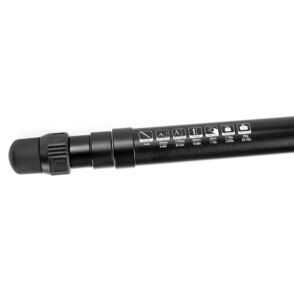 The newest leg extension technology "iSpeedy System" allows you to extend and collapse each section of your monopod faster than ever. You simply pull the section to the desired length and it stays locked at that position. To collapse, you twist and push each section back into place. It will take you less than a second to fully extend or collapse each section of the monopod.
