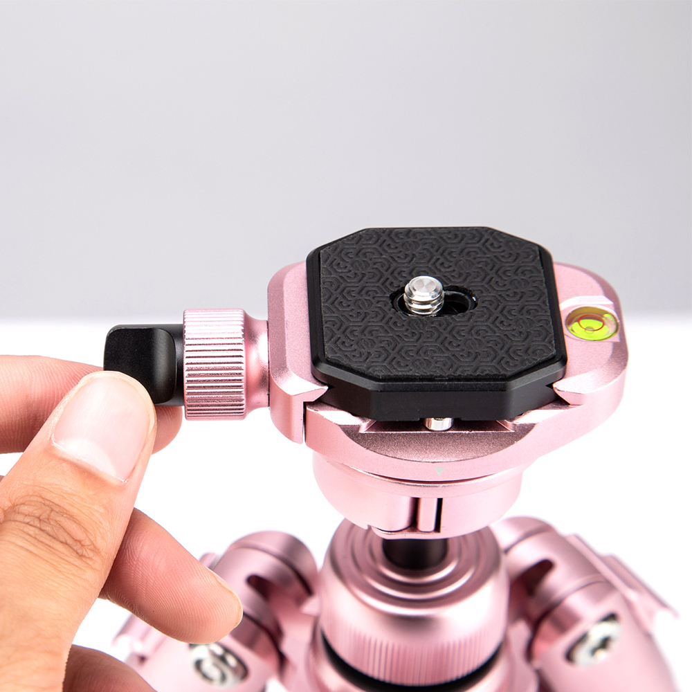 With a maximum length of 1525mm and a weight of only 800gr, the Free 1 Aluminium Pink / Black Tripod is a very compact tripod and easy to put in a bag.