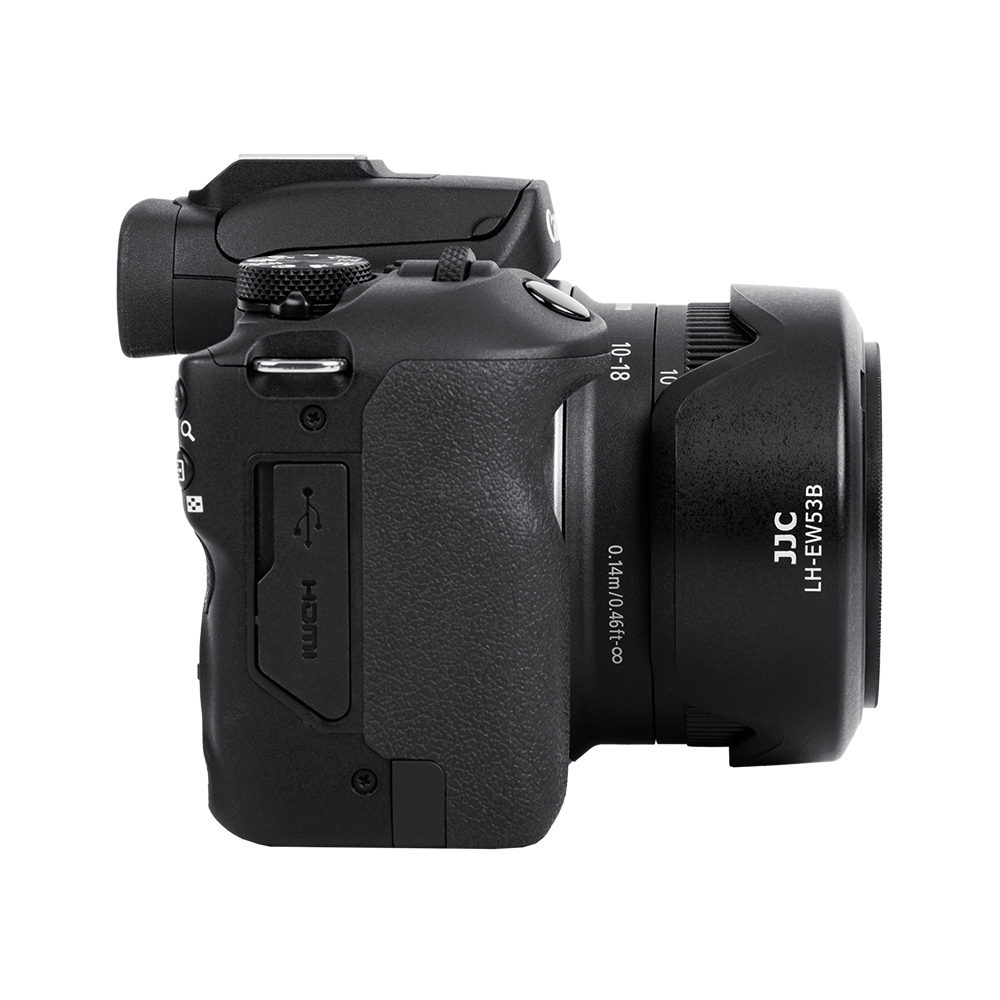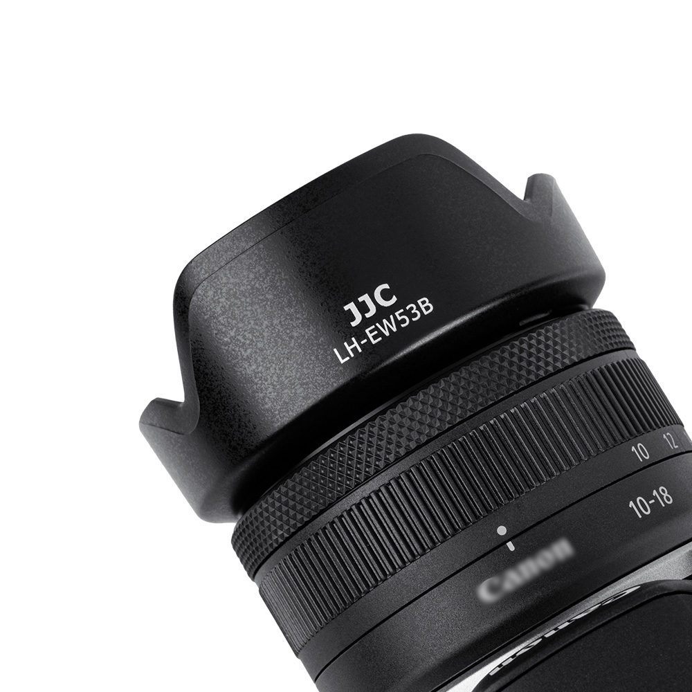 The JJC EW 53B Canon Lens Hood features a bayonet mount and is compatible with the Canon RF S 10 18mm lens. The lens hood prevents unwanted stray light from entering the lens. The hood has a non glare matte finish on the inside that is non reflective.