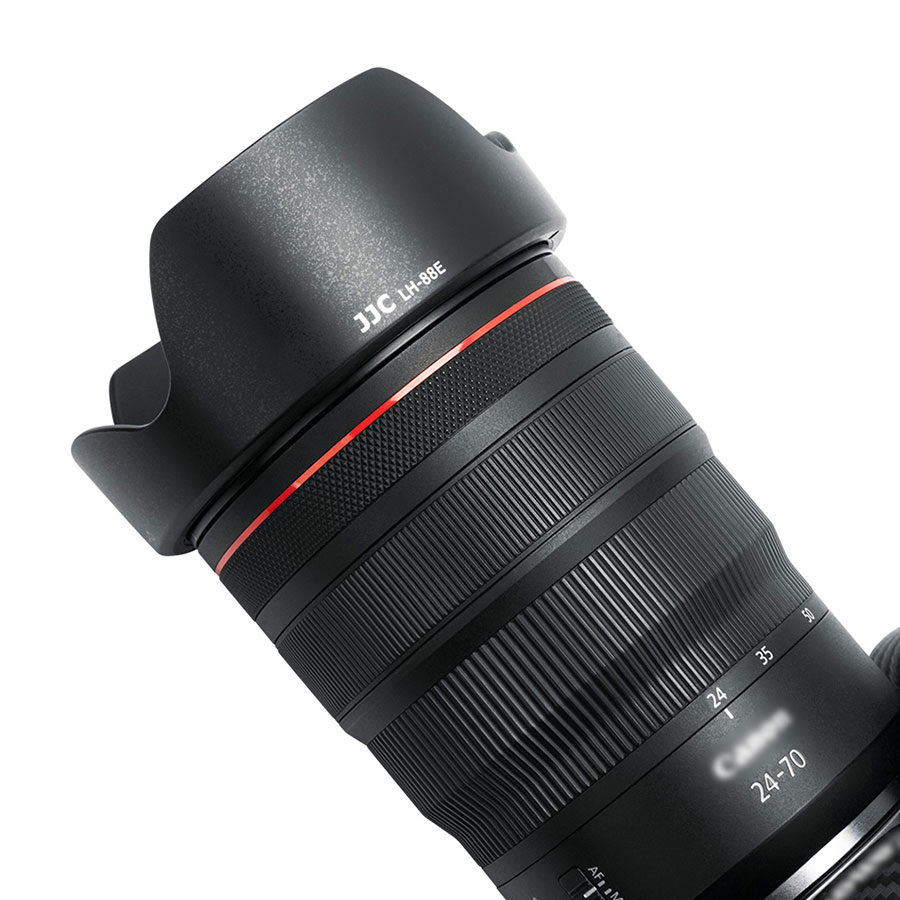 The JJC EW 88E Lens Hood is specially designed for use with the Canon RF 24 70mm f/2.8L IS USM lens and is a replacement for the original Canon EW 88E lens hood. It prevents unwanted stray light from entering the lens by extending and shading the end. The lens hood is designed to fit perfectly with the specific focal length of the lens for which it is designed.