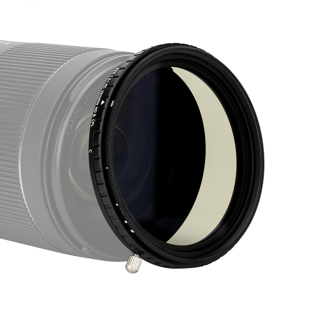 The JJC F NC series combines a circular polarizing filter and a variable ND2 ND32 neutral density filter into one, specially designed for landscape shooting, aiming to solve the problem of carrying multi filters when going out. The filter adopts premium optical glass and wrapped in aircraft grade aluminum frame. The thickness of the frame is about only 8.8mm / 0.35".