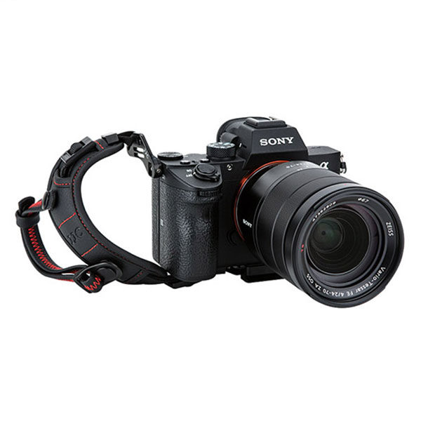 The JJC HS ML1M Hand Strap is specially designed for use with a system camera with a mounted lens. The strap attaches to the 1/4" 20 tripod socket on your camera with the base plate and to the carrying strap mount with the other end. The wrist strap has an additional safety feature that prevents the camera from accidentally slipping out of your hand