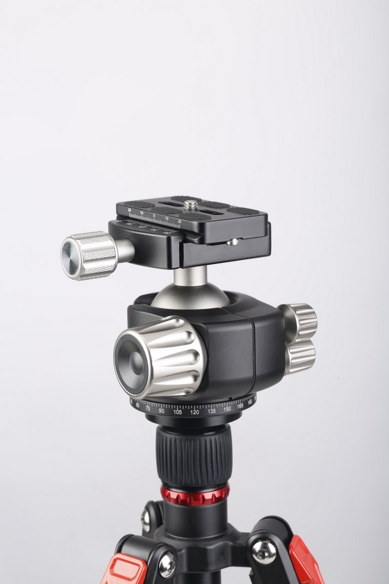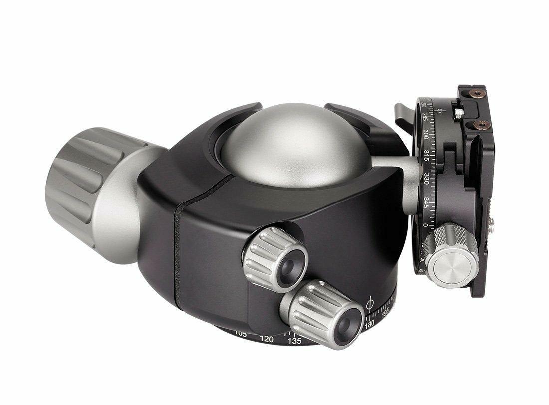 Leofoto LH-40 to nisko profilowa aluminiowa głowica kulowa wyposażona w system szybkiego zwalniania kompatybilny z ArcaSwiss. Precyzyjnie wykonana kula z pustym rdzeniem zapewnia ultra płynną pracę a duże ergonomiczne pokrętła blokujące umożliwia pełną i szczegółową kontrolę nad głowicą. Pomiędzy kulą a misą zastosowano tuleję Delrin która skutecznie minimalizuje współczynnik tarcia. Głowica wyposażona jest w duże pokrętło, które służy do panoramowania (360 stopni). Umożliwia ono również pochylenie aparatu o 90 stopni w dwóch kierunkach w przypadku fotografii portretowej. LH-40 posiada także dwa niezależne pokrętła blokady panoramy i kontroli oporu – pozwalające na jeszcze precyzyjniejsze ustawienie kompozycji kadru. Wszystkie pokrętła posiadają uszczelki które chronią wnętrze przed dostaniem się kurzu i wilgoci do wewnątrz. Specyfikacja: - Średnica kuli: 40 mm - Średnica podstawy: 57 mm - Otwór montażowy: 3/8” - Maksymalne obciążenie: 20 kg - Waga: 496 g