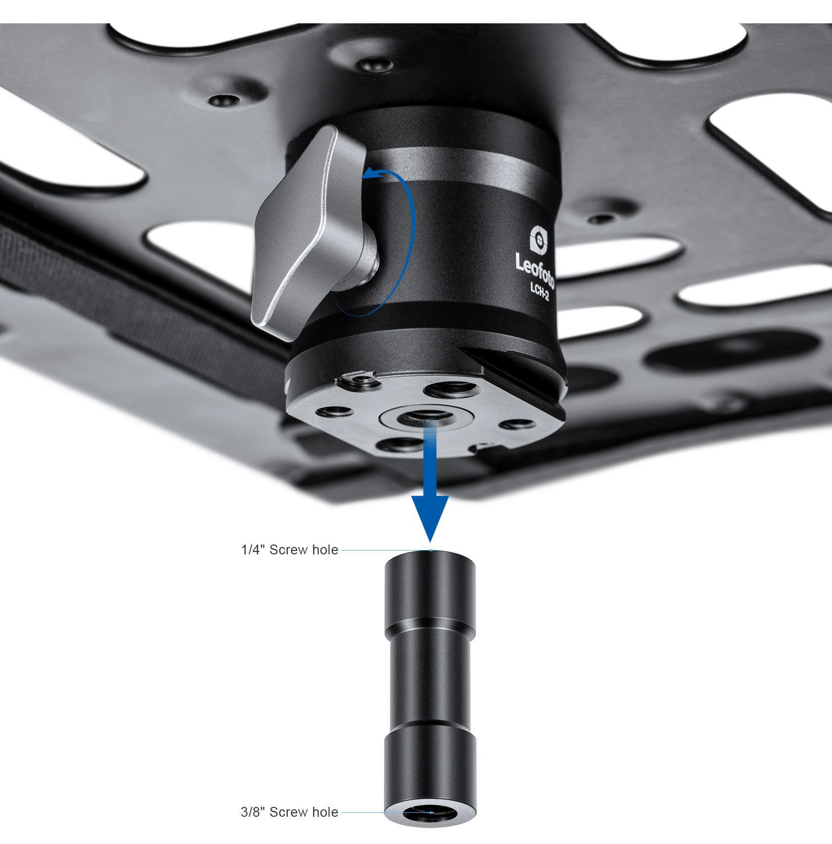 Leofoto LCH-2 to przenośna platforma robocza umożliwiająca komfortową pracę w terenie na laptopie. Montowana do statywu fotograficznego lub oświetleniowego za pomocą bazy typu ArcaSwiss wyposażonej dodatkowo w 3 gwinty montażowe 3/8 cala i 2 gwinty 1 cala. Konstrukcja wykonana została z wysokiej jakości aluminium zapewnia odporność na trudy codziennej pracy a wentylowana powierzchnia umożliwia swobodny przepływ powietrza do laptopa. długość – 390 mm szerokość – 280 mm waga – 737 g