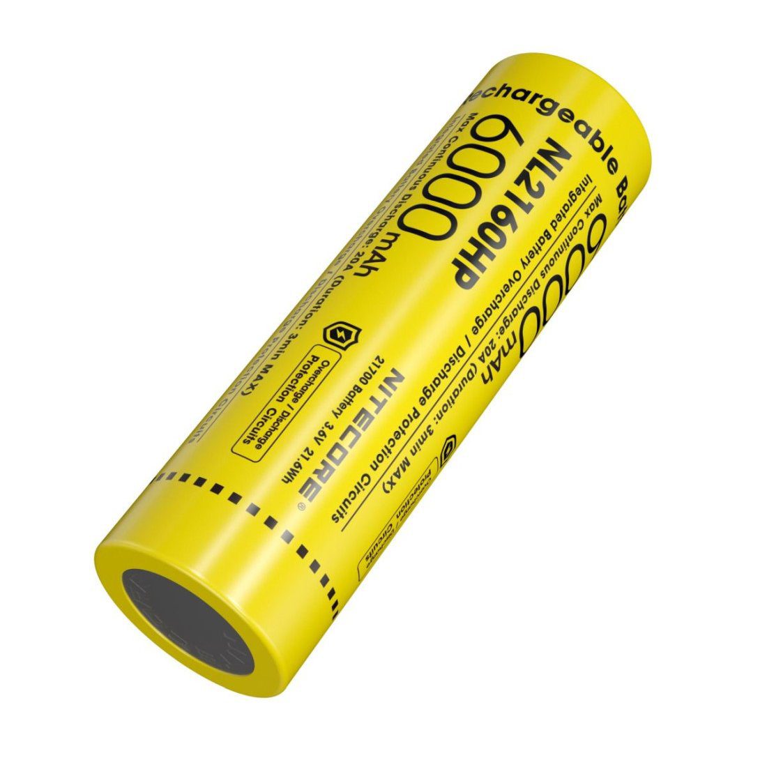The Nitecore NL2160HP (6000mAh) 21700 rechargeable battery with 6000mAh capacity is specially designed for use in high power consumption devices. With a maximum discharge current of 20A, the battery works well with very powerful devices, such as Nitecore's torches. It features protections against overcharging, over discharge and short circuiting. This reduces the risk of battery damage. ,