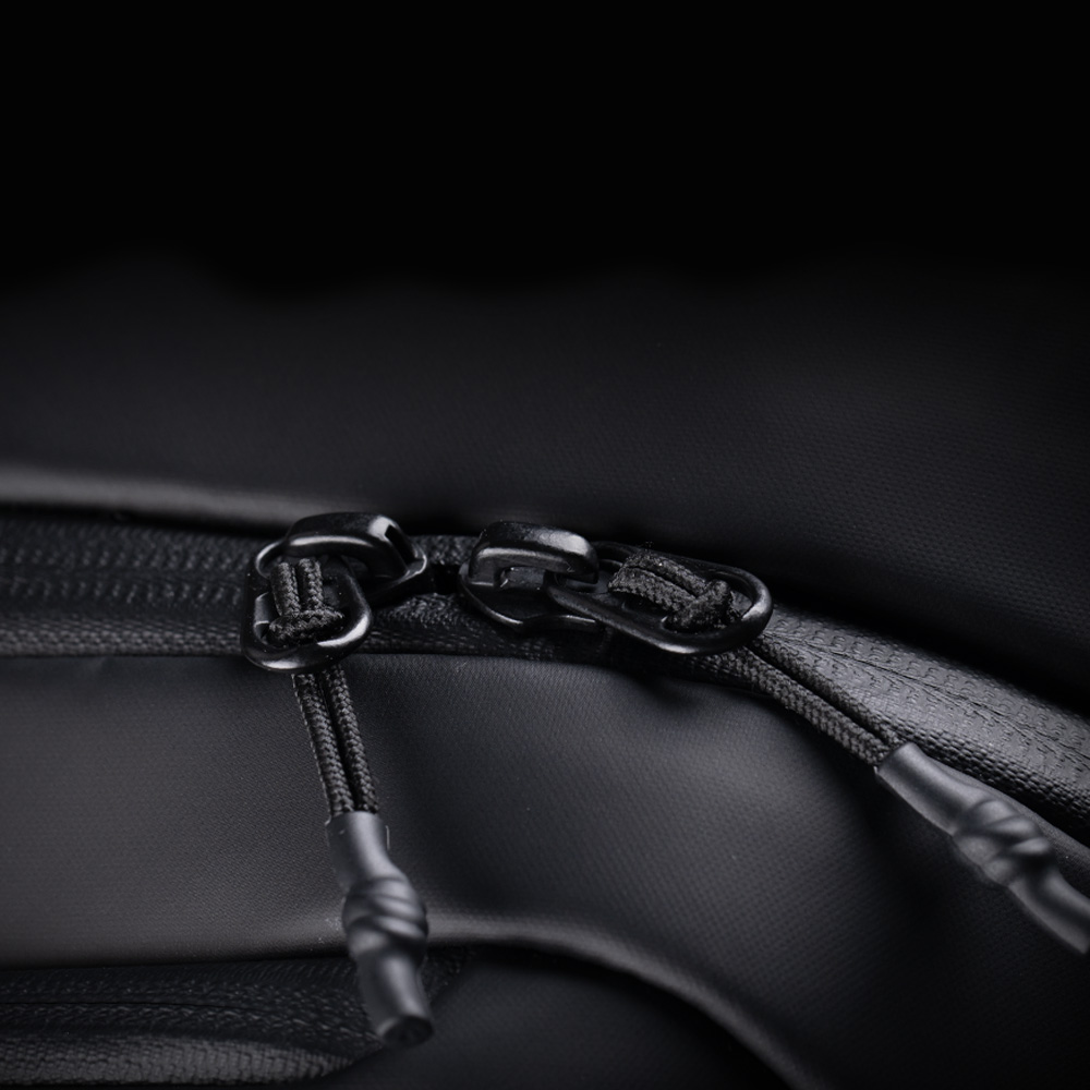 YKK zips ensure waterproof durability, and there are also handy details such as a hidden Airtag pocket and a detachable bottom strap for added versatility. ,