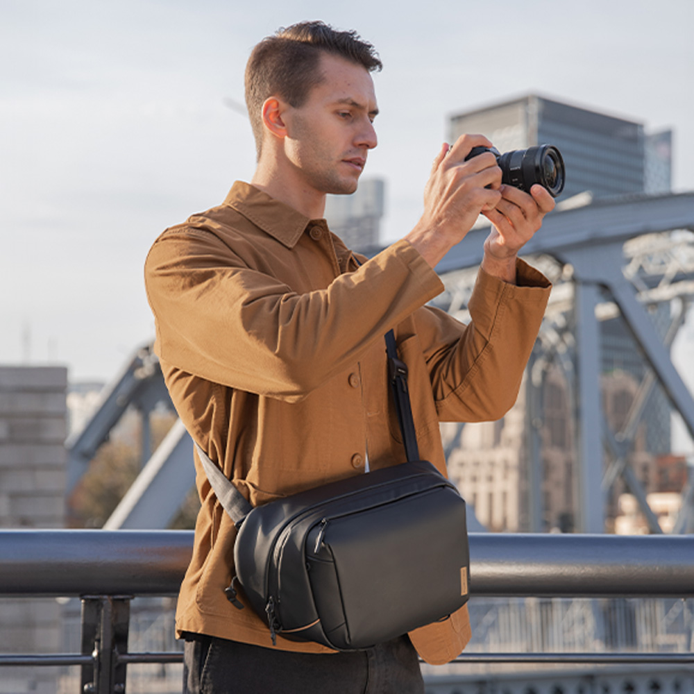 The PGYTECH OneGo Solo V2 6L seamlessly combines style and functionality, making it ideal for commuting and photography in different scenarios. With a user friendly large opening, customisable dividers and multiple pockets, it ensures organised and accessible storage. The high quality PU coated fabric ensures durability and features such as battery badges enhance convenience. The front zip pocket fits everyday items and a hidden side pocket lets you store your water bottle.
