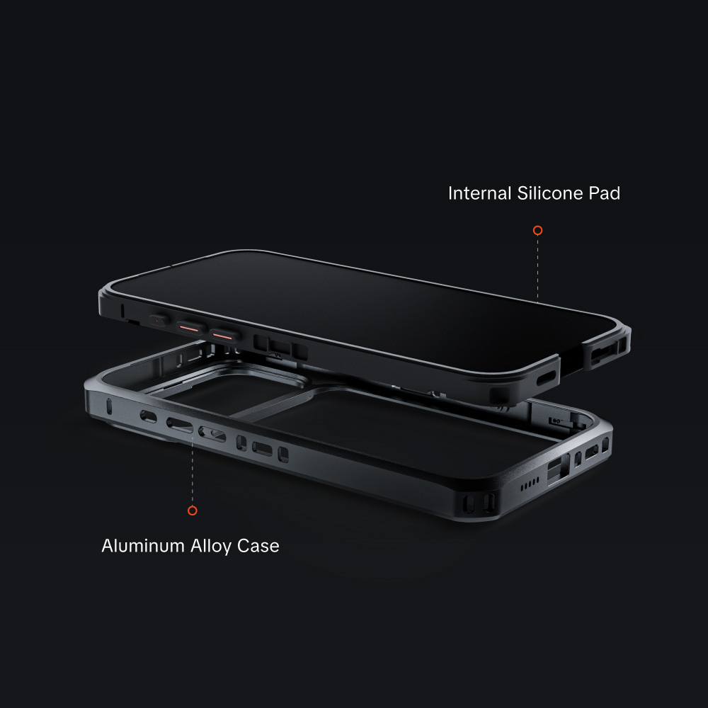 The PGYTECH ProShot Phone Cage (iPhone 17 Pro Max) is designed exclusively for the iPhone 17 Pro series. It is CNC milled from a single piece of aluminium, is exceptionally light and has an ultra thin edge for comfortable one handed use. It can serve as an everyday protective case or be transformed into a versatile phone holder by attaching quick release clips and adapter mounts.