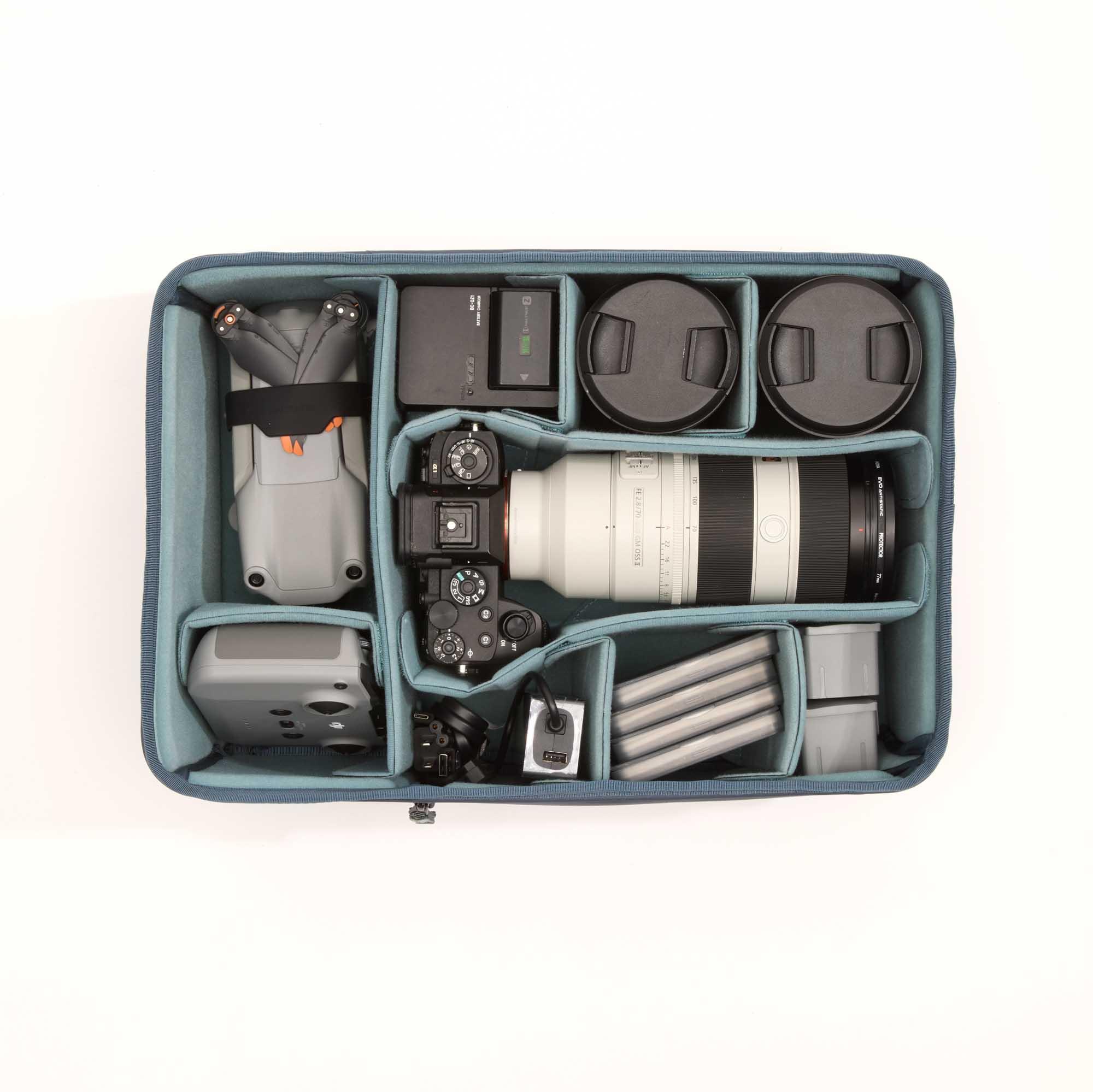 Core Unit Large DSLR v3 Kazeta Core Unit Large DSLR v3 je výsledkem aktualizace naší řady modulárních kazet v důsledku měnících se požadavků našich zákazníků. Tento modul byl zvětšen, aby se do něj vešly větší objektivy včetně objektivu Sony 200-600 mm. Ideálně vyplní prostor batohů Explore v2 35, Action X v2 X40 a x50 a přenosných kufrů. Stále nabízí klíčové vlastnosti systému Core unit včetně laminovaných přepážek, bočních stěn z pěny EVA, vnitřního rámu pro zajištění tuhosti a odnímatelného krytu. Hloubka vložky Large DSLR v3 je ideální pro bezzrcadlovky a digitální zrcadlovky vysoké až 16 cm. Nová jednotka je vybavena bočním přístupem na zip do vnitřního prostoru, který lze synchronizovat s batohy Explore v2 nebo Action X v2. Technické údaje: vnější rozměry - 29 x 42 x 17 cm hmotnost - 1,02 kg