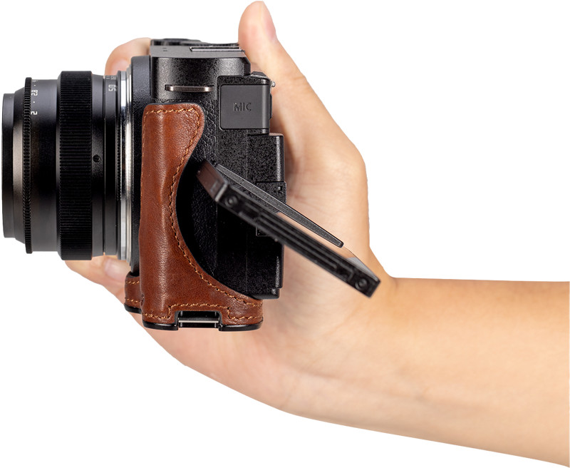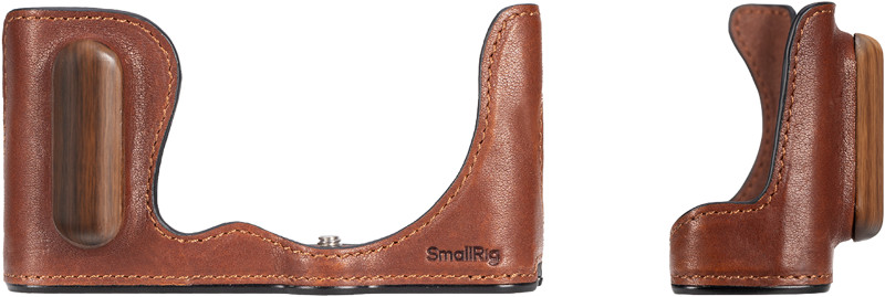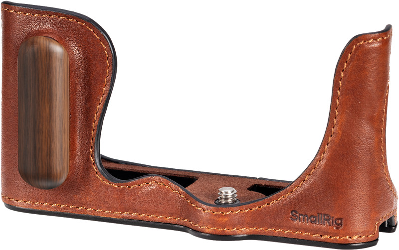 Je navrženo tak, aby chránilo fotoaparát a zároveň zdůrazňovalo jeho historický půvab a přilnavost. Vestavěná dřevěná rukojeť pro zvýšení pevnosti úchopu prsty. Odolný a prodyšný materiál polopouzdra ze svrchní kůže obohacuje retro estetiku a pocit z fotoaparátu, zatímco jeho semišová podšívka zajišťuje ochranu proti poškrábání.