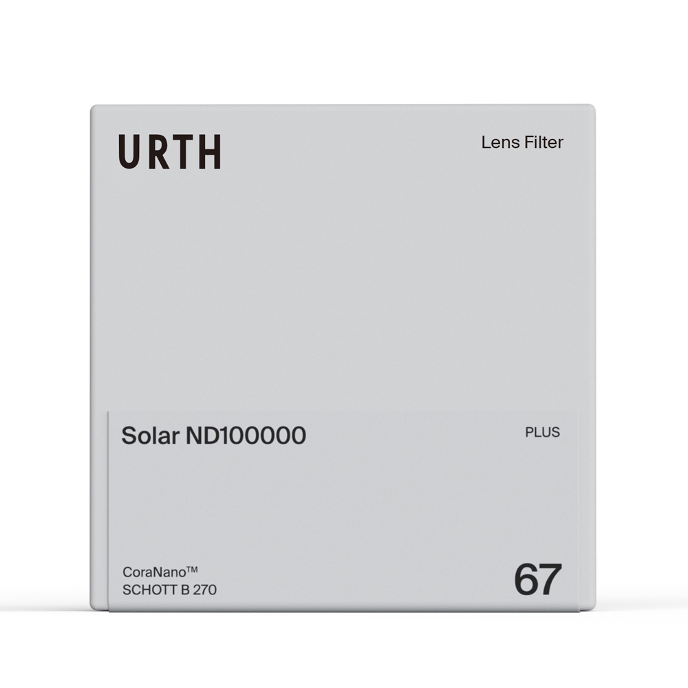 The Urth 67mm Solar ND100000 (16.6 Stop) Filter Plus+ offers a fixed light reduction of 16.6 stops for safe photography of solar events, eclipses and extreme brightness.