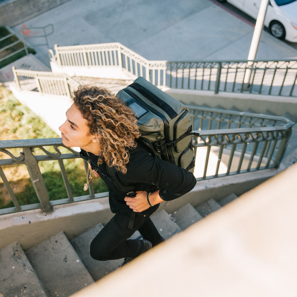 The Hexad Access Duffel is tailor made for the traveling photographer. The size of the bag is within the limit for hand luggage on the plane. You carry the backpack comfortably on your back with the stowable shoulder straps. The bag also works great as a handbag with handles on all four sides. ,