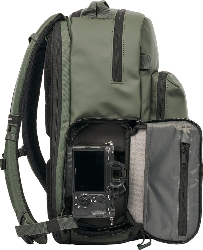 Batoh nabízí velkou přední organizační kapsu. kde lze přehledně uložit kabely, notebook, powerbanku, pasy a další drobnosti – nemusíte otevírat celý batoh, abyste našli potřebné věci. Vnitřní prostor je kompatibilní s WANDRD Camera Cubes, takže je možné jej přizpůsobit pro fotografické vybavení, cestovní nezbytnosti nebo každodenní předměty. Otevírání typu clamshell umožňuje snadný přístup do hlavní komory a rychlé vyhledání obsahu.