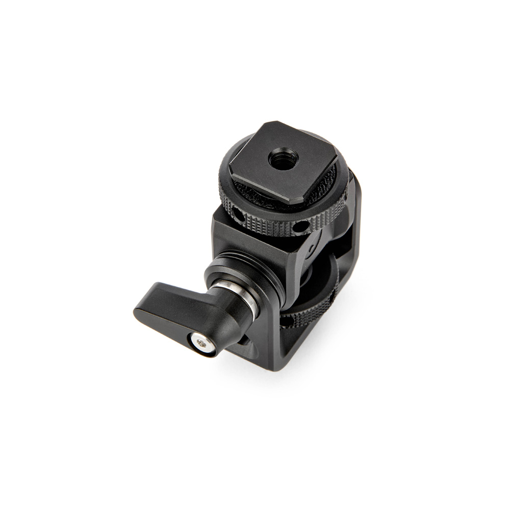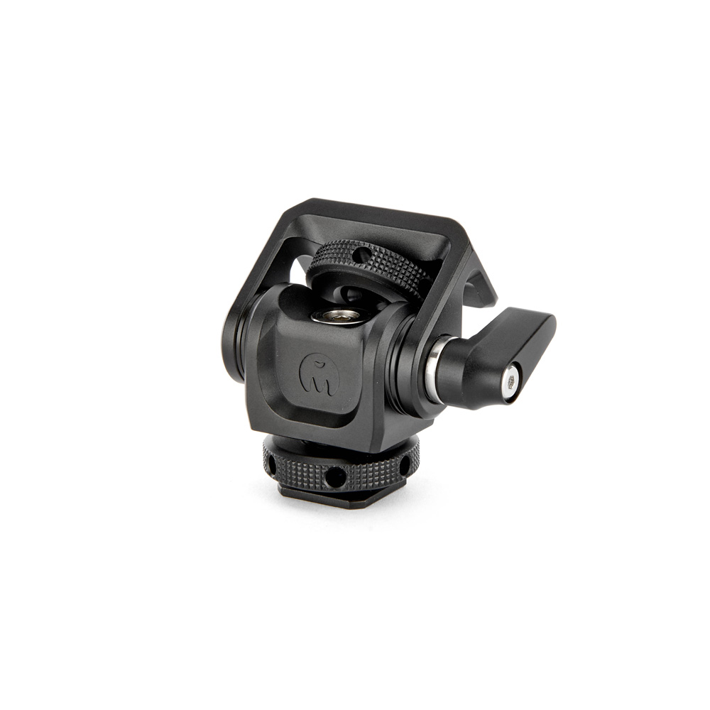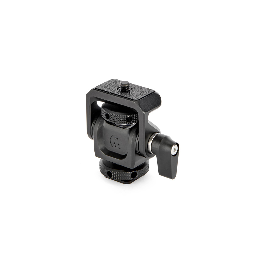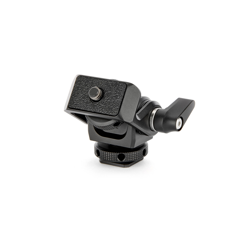 A compact pan and tilt mount with a coldshoe and ¼" 20 threaded base, plus tilt mechanism with lever, perfect for attaching monitors, microphones and LED lights.