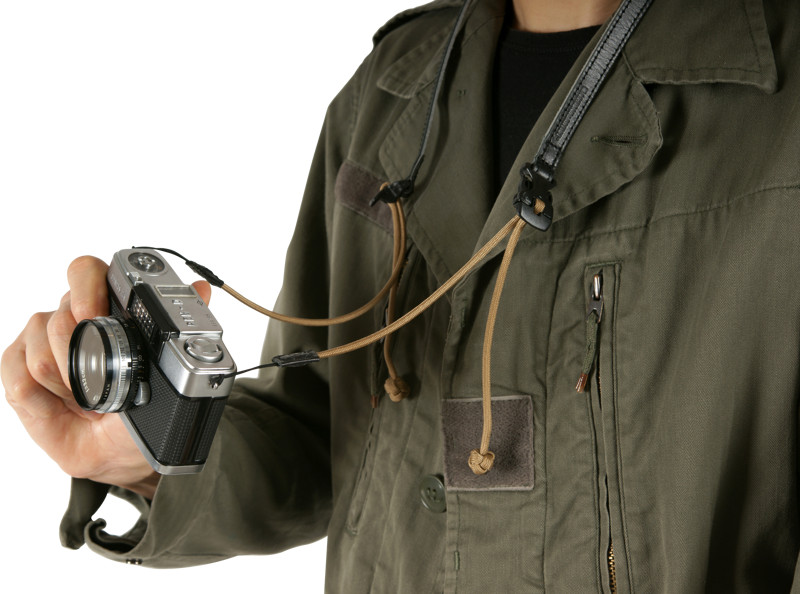 Popruh nabízí nastavitelnou délku na obou stranách, přičemž jedna strana je vybavena přezkou pro snadné připevnění nebo odejmutí od fotoaparátu. Konce paracordu jsou svázány keltskými knoflíkovými uzly, které zabraňují rozmotávání a zároveň usnadňují uchopení při nastavování délky. Spojovací část je pečlivě sešitá a vyztužená, což zajišťuje odolnost a spolehlivost při používání. Určeno pro kompaktní fotoaparáty s tenkou smyčkou. Vyrobeno v Japonsku.