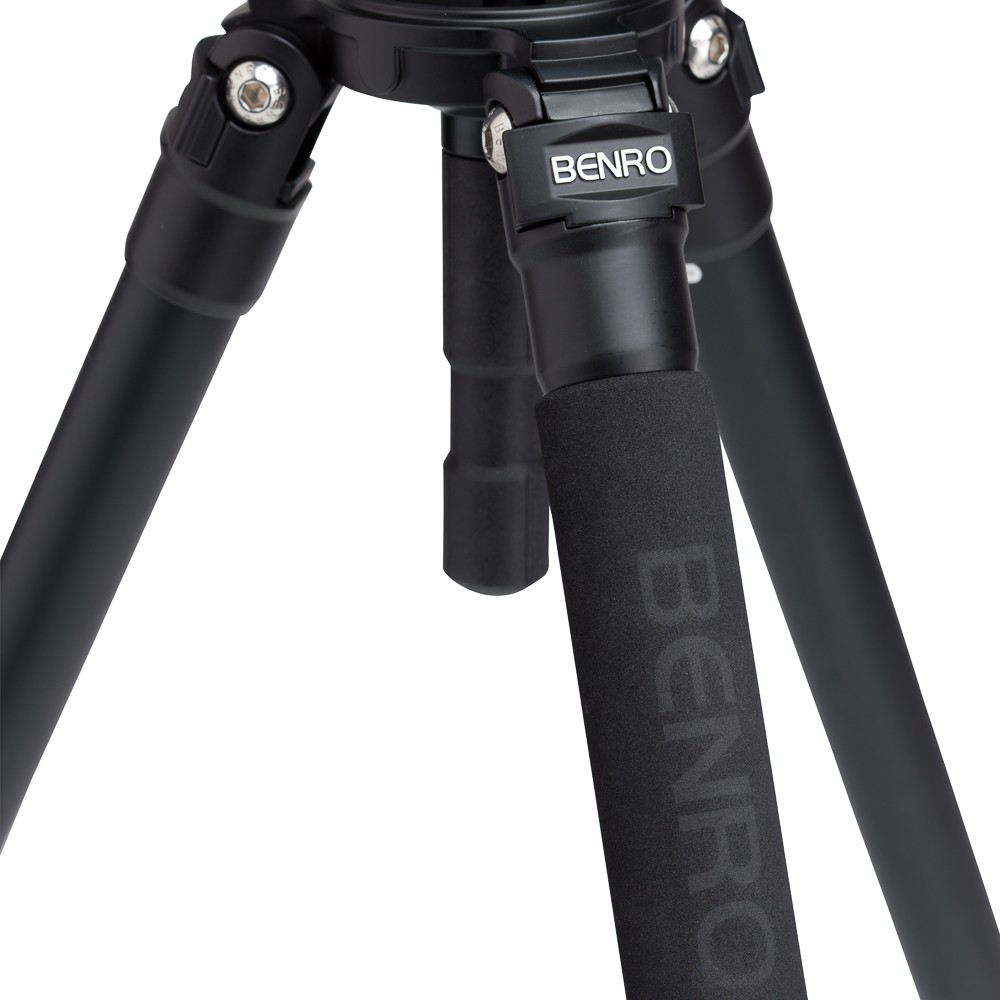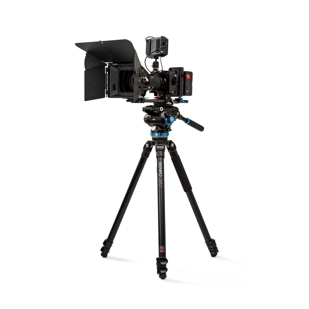 Benro A373FBS8PRO to profesjonalny statyw do współpracy ze średnimi i dużymi kamerami wraz z osprzętem. Pojedyncze 3-sekcyjne nogi są niezależnie regulowane w trzech pozycjach a znajdujące się w zestawie metalowe kolce umożliwiają pracę nawet w trudnych warunkach terenowych. Będąca w zestawie głowica S8PRO przeznaczona jest dla aparatów i bezlusterkowców pracujących z akcesoriami o łącznej wadze do 8 kg. Głowica wyposażona jest w płaską podstawę o średnicy 75mm i gwint mocujący 3/8 cala może więc stać się wszechstronnym narzędziem filmowca mogącym pracować na statywach, monopodach i kranach. Dysponuje blokadami pochyłu i obrotu, zaawansowanym 6-stopniowym systemem przeciwwagi i podświetlaną poziomicą. Dwa mocowania z gwintem3/8 cala do montażu dodatkowych akcesorii pozwalają używać monitora lub rejestratorów audio bez konieczności stosowania klatki na aparat. Cały system regulacji głowicy opiera się o metalowe i precyzyjne gałki oraz nowy typ przesuwnej szybkozłączki.