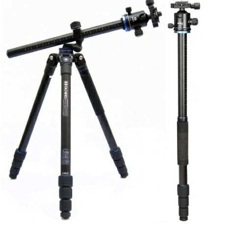 Statywy serii GoPlus Travel to topowe tripody podróżne w ofercie Benro. Solidnie wykonane z nowoczesnymi rozwiązaniami w tym łamaną kolumną i funkcją monopodu są świetną propozycją dla aktywnych fotografów. Statyw FGP28AB2 wykonany jest z wysokiej jakości aluminium ale w niektórych jego elementach wykorzystane zostały stopy magnezu. Nogi składają się pod kątem 180° i po złożeniu jego pozycja transportowa jest niska i łatwa do przenoszenia. Każda z nóg statywu ma 3-sekcyjną konstrukcję dzięki czemu ich wysokość może być regulowana indywidualnie. Jedna z nóg oznaczona niebieskim pierścieniem jest odkręcana i można ją połączyć z centralną kolumną tworząc w ten sposób w pełni użytkowy monopod. Blokady nóg typu twist-look są zabezpieczone przed niekorzystnymi warunkami atmosferycznymi (woda i kurz) umożliwiając pracę statywu w ciężkim terenie. Środkowa kolumna ma również unikalną funkcję skręcania jej na bok (łamana kolumna) i zblokowanie w dowolnej pozycji.