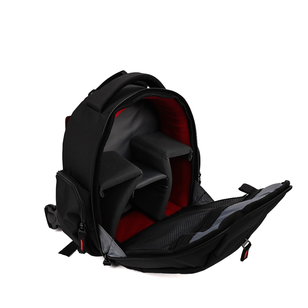 The Andex 100 has two compartments with a zipper on the sides. These compartments are ideal for storing your keys, a cleaning cloth or a folder with filters or memory cards. On the inside of the main flap is a mesh pocket with a zipper for carrying smaller accessories. The backpack is sturdy and neatly finished and comes complete with a matching rain cover. ,