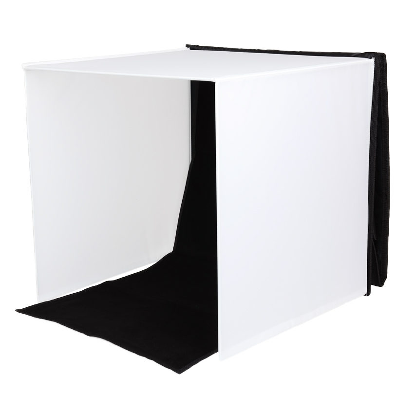 The mini studio, once unfolded, has a size of 60 x 60 x 60 centimeters. Ideal for taking product photos wherever you want! The background can also be quickly attached using Velcro. With the white, black, red or blue background you immediately create the desired atmosphere. Moreover, these colors are easy to use as a background for subjects that need to be detached. By turning the lamps closer or further from the Caruba Portable Photo Studio you can determine the brightness of the light. ,