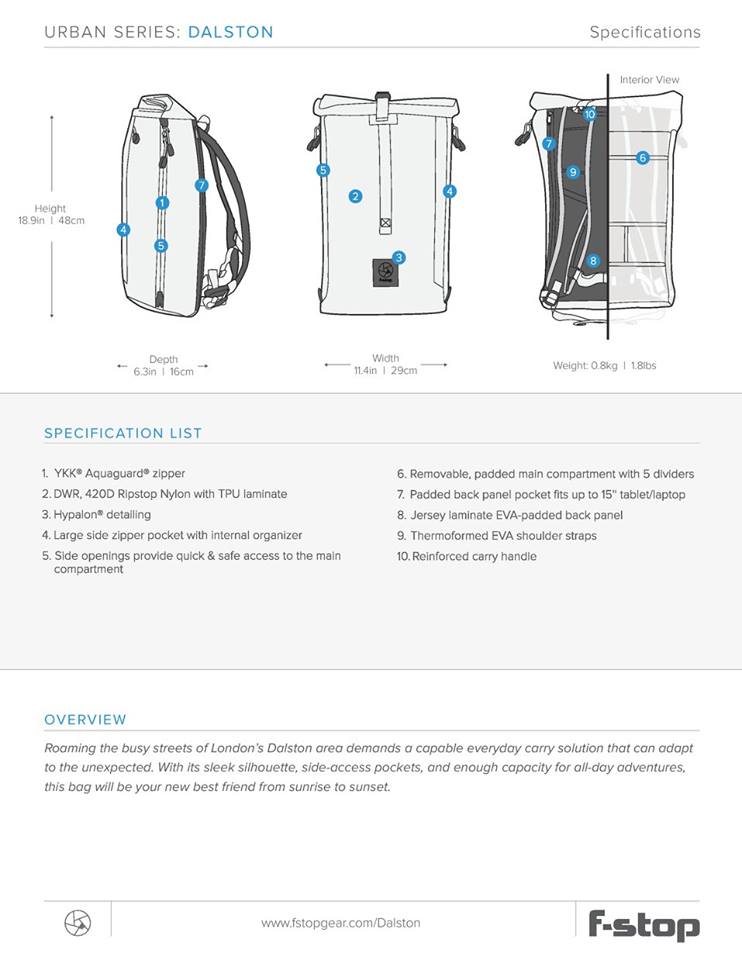 The F Stop Dalston is a robust backpack, suitable for a system or SLR camera with a lens, two extra lenses or a flash. You can store a 15 inch tablet or laptop in a separate compartment.