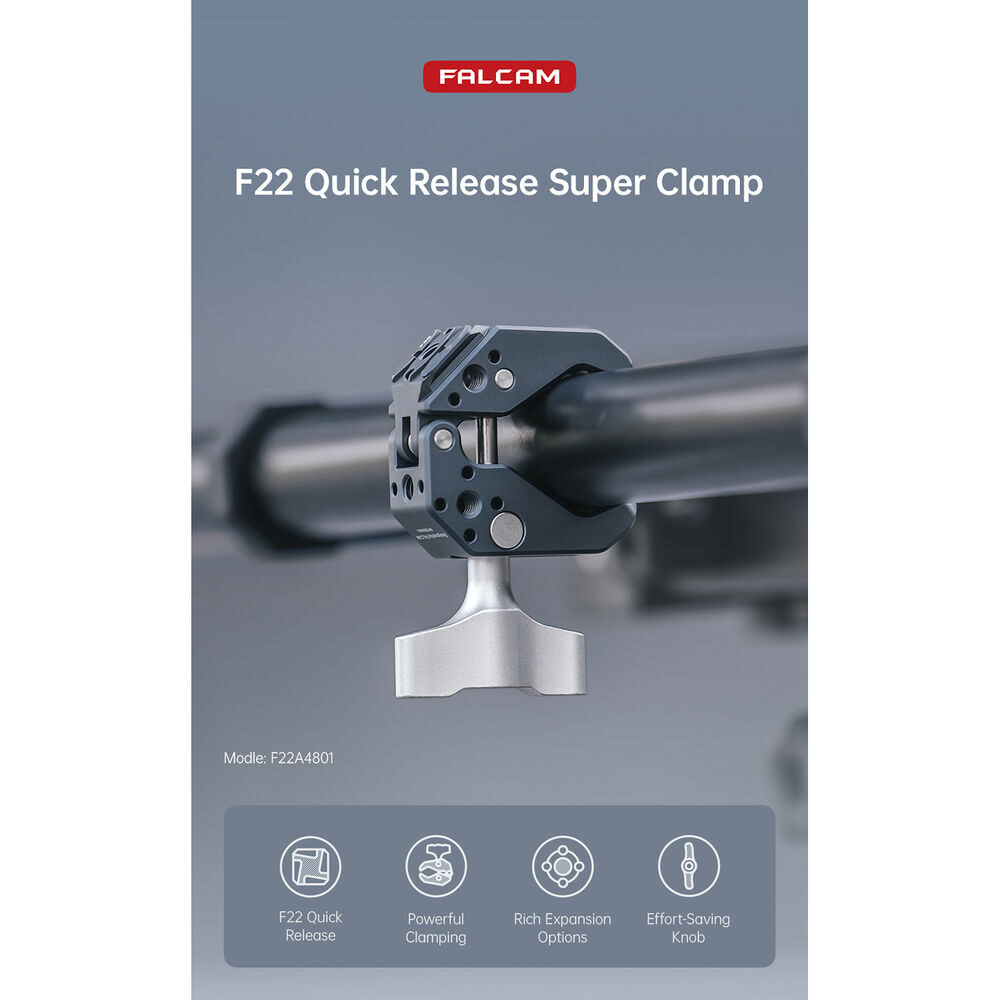 Whether you need to quickly attach a monitor during an on location interview or mount a microphone on a tripod for a mobile shoot, the Falcam F22 Quick Release Super Clamp F22A4801 provides the solution. This clamp holds small cameras, lights and wireless video systems firmly in place, even on awkward surfaces such as pipes and table edges. Thanks to its firm grip and quick installation, you stay flexible and don't lose time during dynamic shooting.