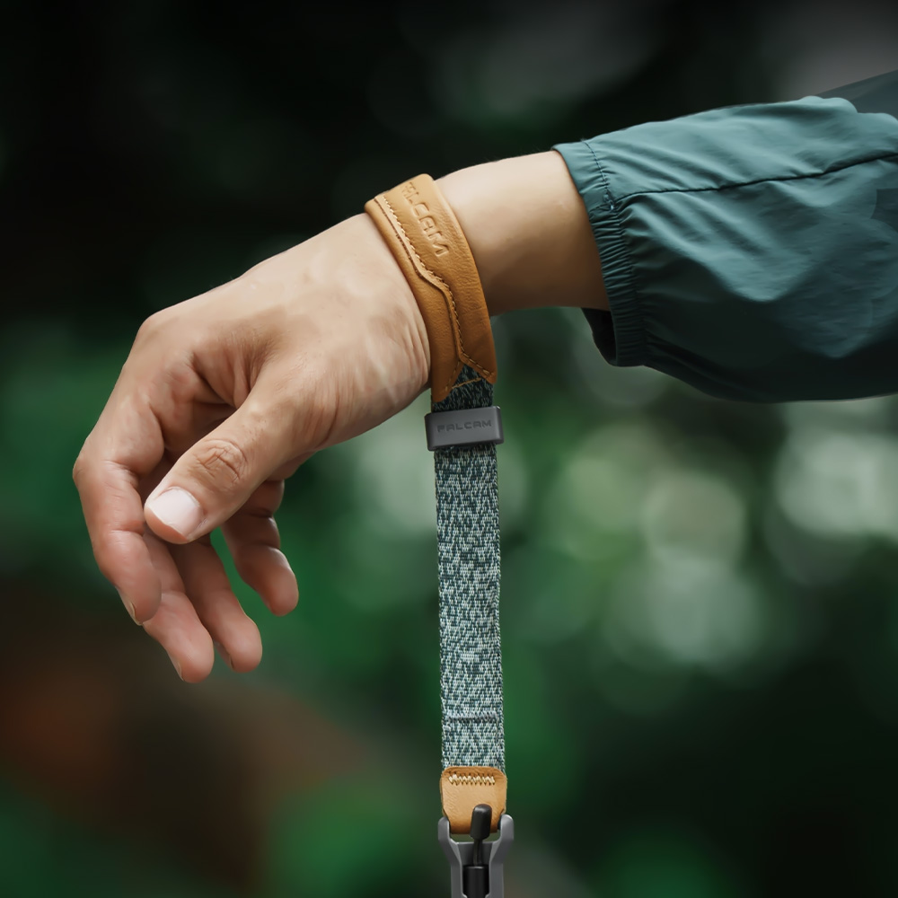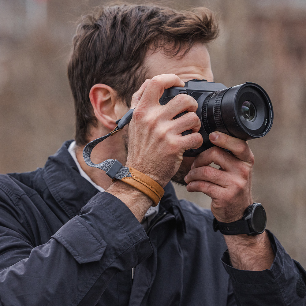 When not attached to the camera, the strap can be easily wrapped around the wrist and fastened magnetically, transforming it into a wrist strap for easy storage.
