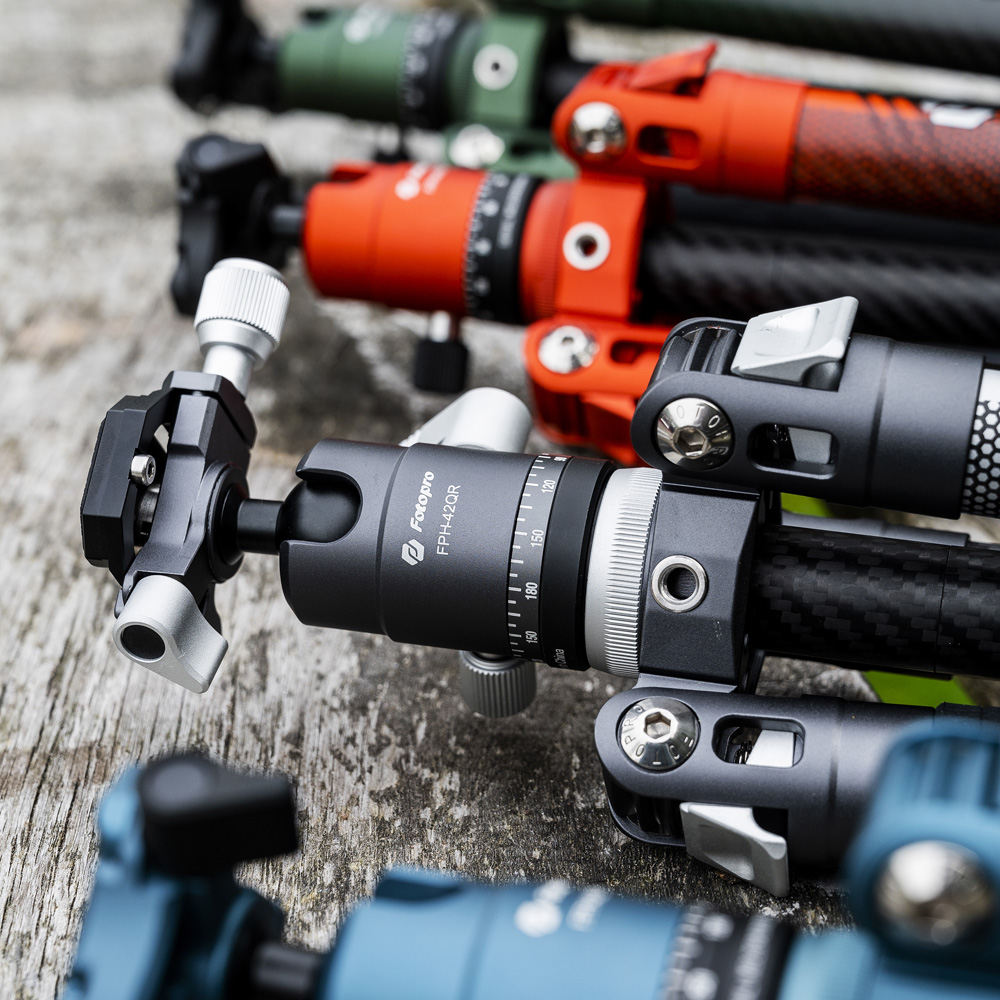 It takes only one second to unfold and lock the legs with the new Fotopro quick locking system. The eccentric build also features a dual 360°Panorama shooting: a the two axis design that enables independent rotation of the camera platform, even when the tripod is unbalanced. ,