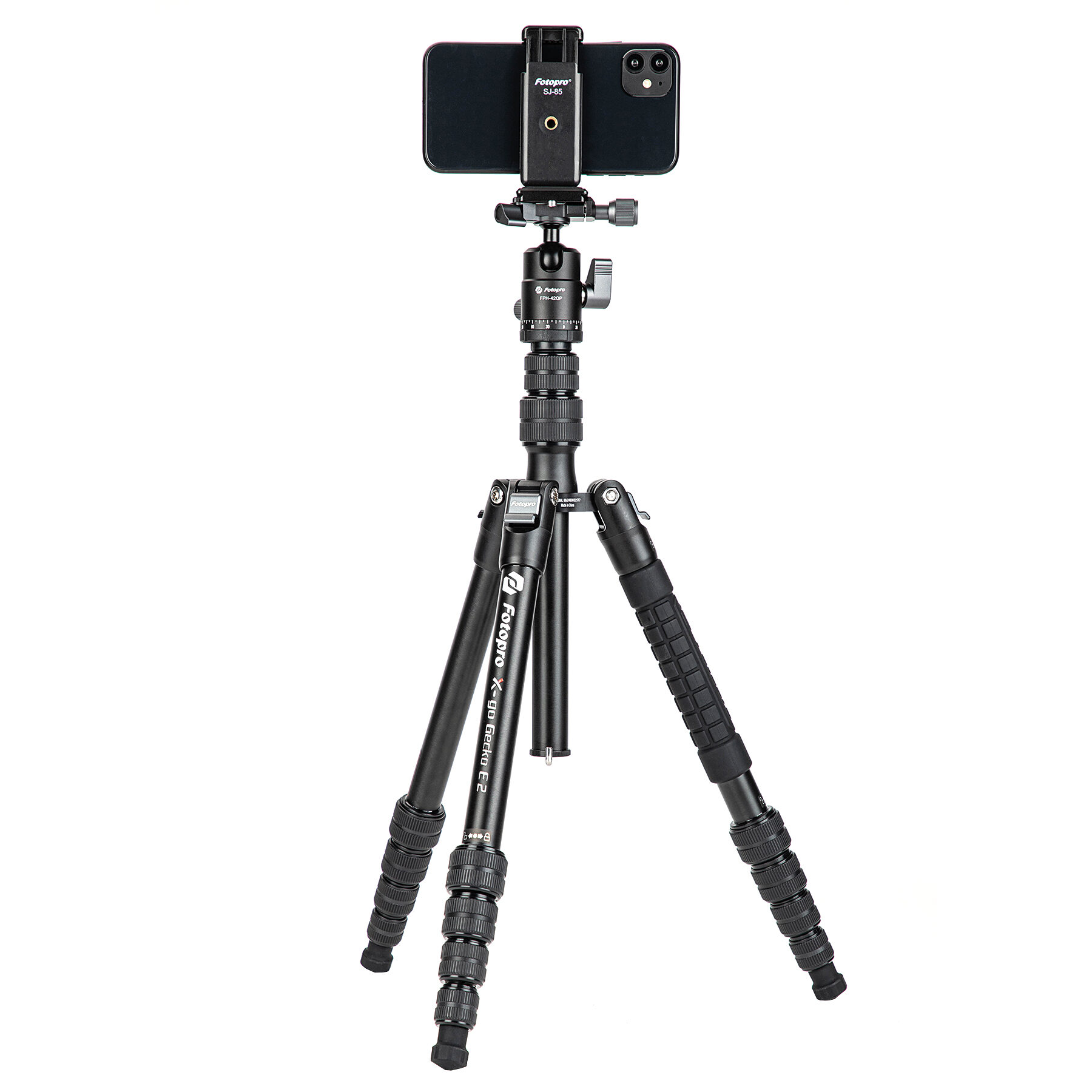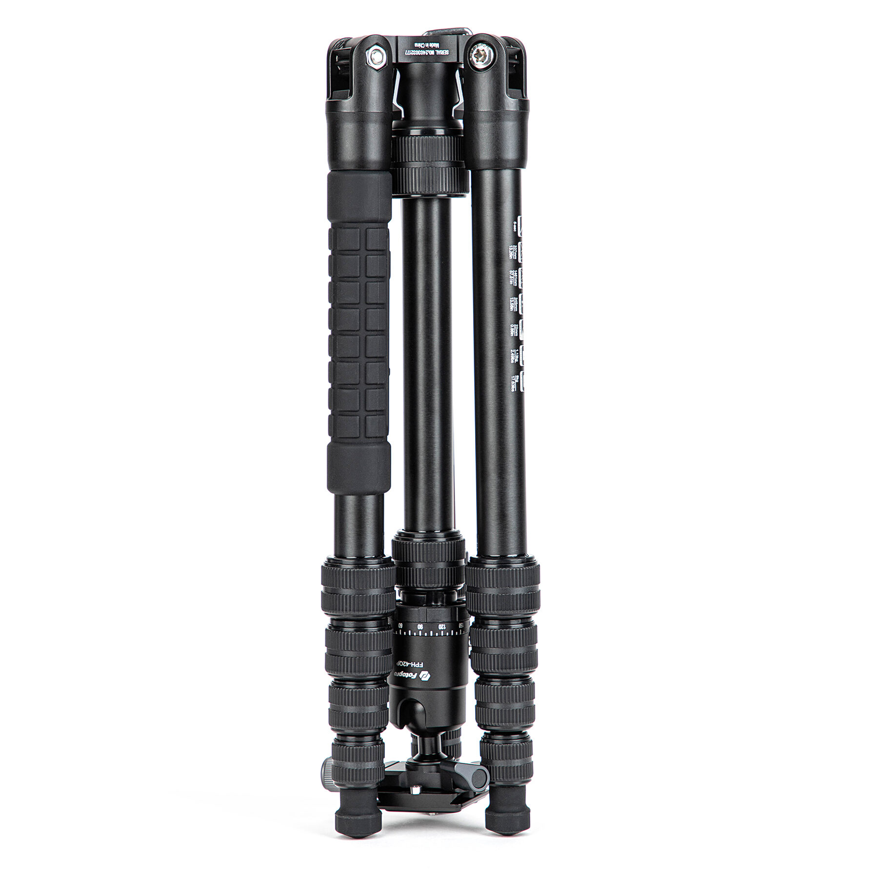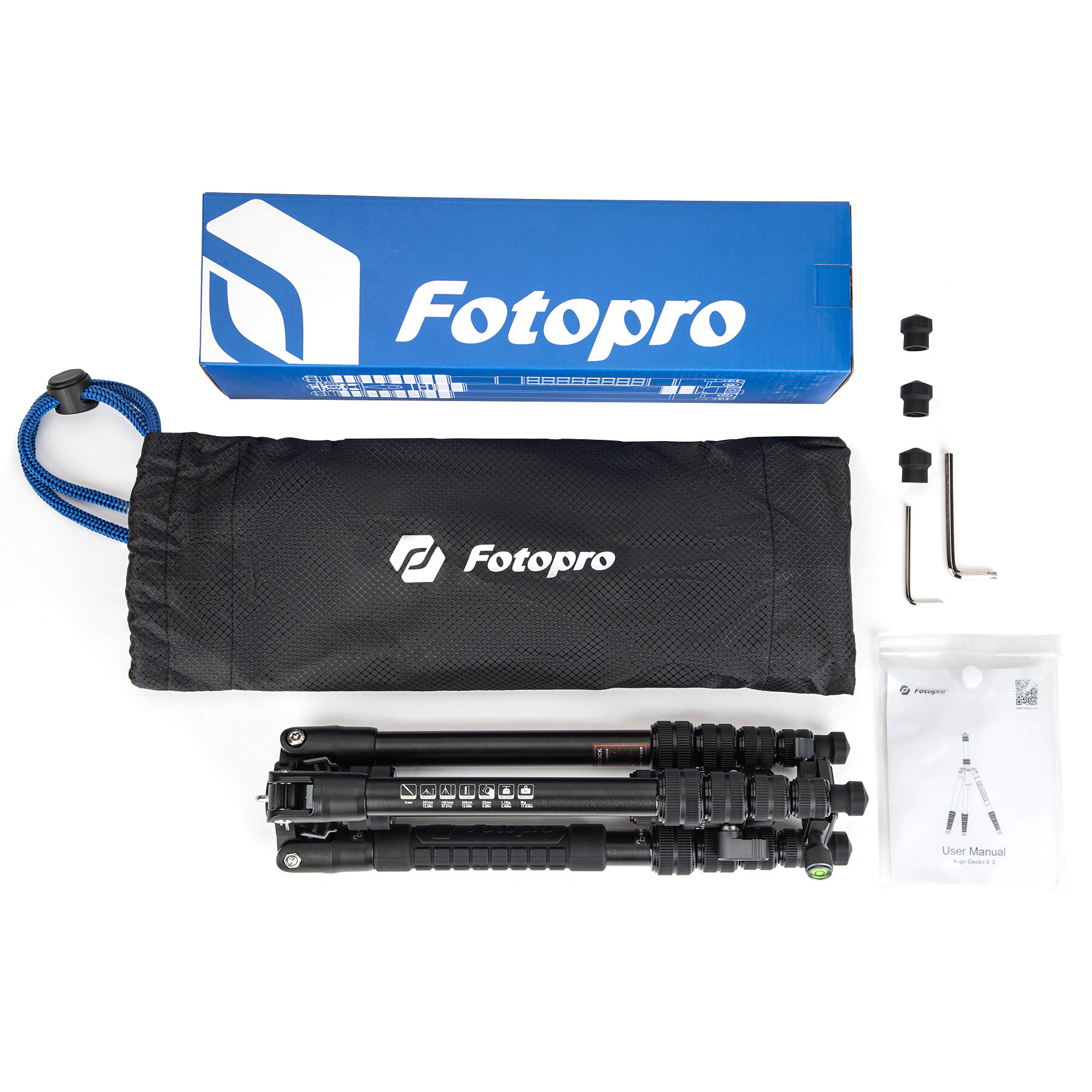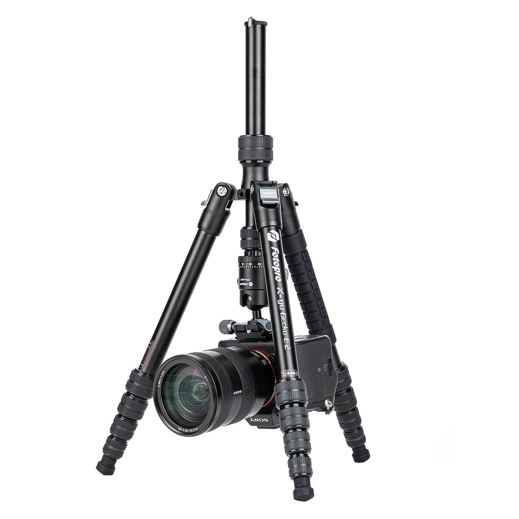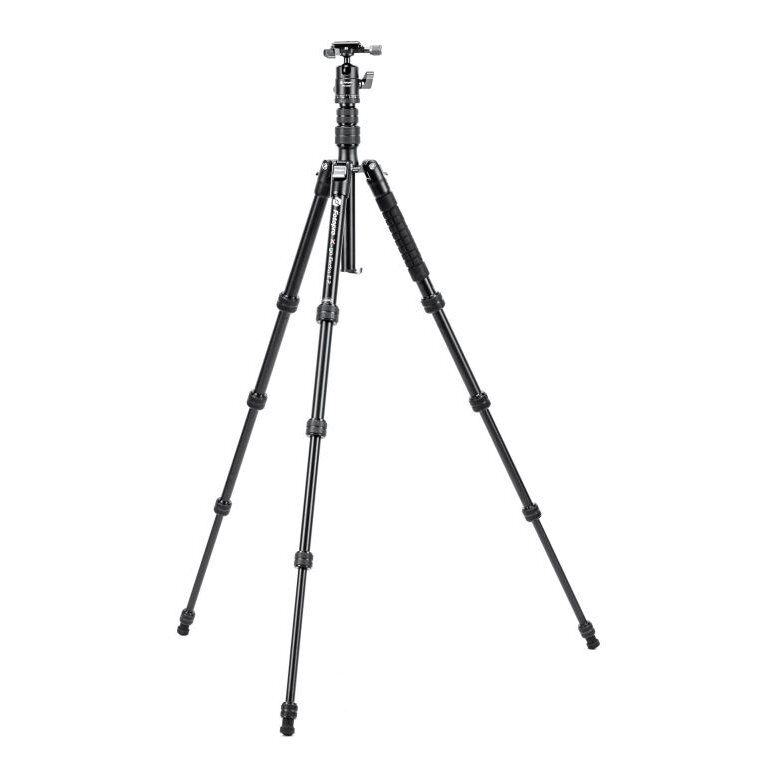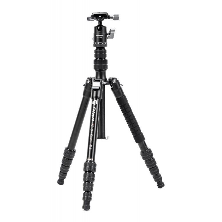 The Fotopro X Go Carbon E 2 Tripod with FPH 42QP ball head has legs with 5 sections that are locked with a twist lock system. With the centre column extended, the tripod has a maximum working height of 146 cm. Reversing the centre column allows a minimum working height of 33.7cm.