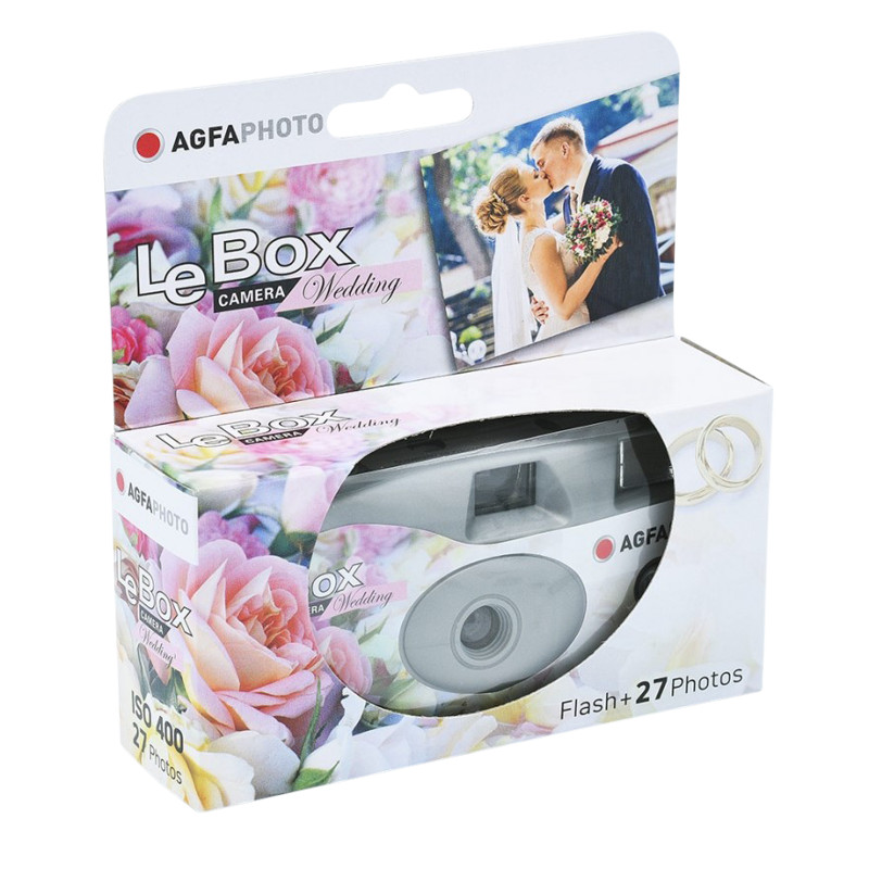 AfgaPhoto LeBox Wedding Flash je snadno použitelný jednorázový fotoaparát, který je dodáván s barevným filmem pro 27 snímků.