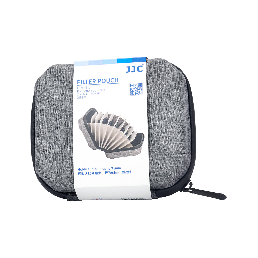 The JJC FP K10 Filter Storage Case Grey provides a secure and convenient transport and storage solution for up to ten 95mm circular filters. The pouch protects your filters from dust, shock, and water splashing, while itself is compact and portable to be inserted in a camera bag.