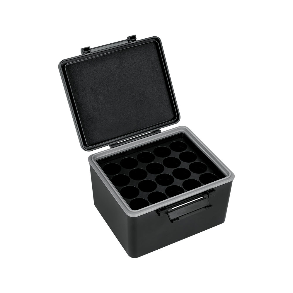JJC JBC 20X18650 Battery Case je organizér určený až pro 20 kusů baterií 18650. Toto pouzdro je vyrobeno z vysoce kvalitního a ekologického plastového materiálu ABS, je odolné vůči tlaku, nárazuvzdorné, robustní a nabízí dlouholeté spolehlivé používání a dokáže efektivně unést hmotnost plné baterie. Díky silikonovému těsnicímu O-kroužku uvnitř je pouzdro odolné vůči vodě a lze jej účinně udržovat bez prachu.