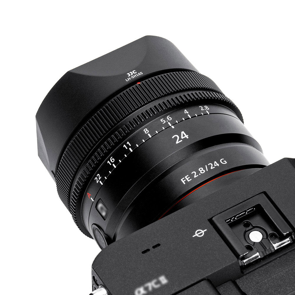 The lens hood has a square, tapered front design that is compact and refined. When attached, this lens hood does not cause vignetting and does not affect the use of 49 mm filters or lens caps. Furthermore, by extending the end of the lens, it effectively prevents excess stray light from entering the lens. The extension of the end provides additional protection to the lens in case of accidental impact. JJC LH SH165 replaces Sony ALC SH165 and ALC SH166.,