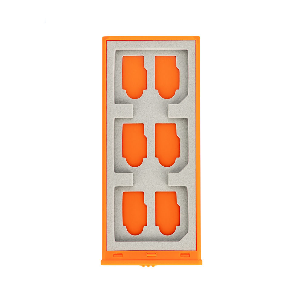 Pevné a odolné pouzdro na paměťové karty JJC MCK SD6GO nabízí ochranu pro 12 paměťových karet micro SD a 6 karet SD. Oboustranný absorpční tvarovaný gumový vnitřek zajišťuje, že každá karta zůstane na svém místě a nemůže se poškodit například nárazy.