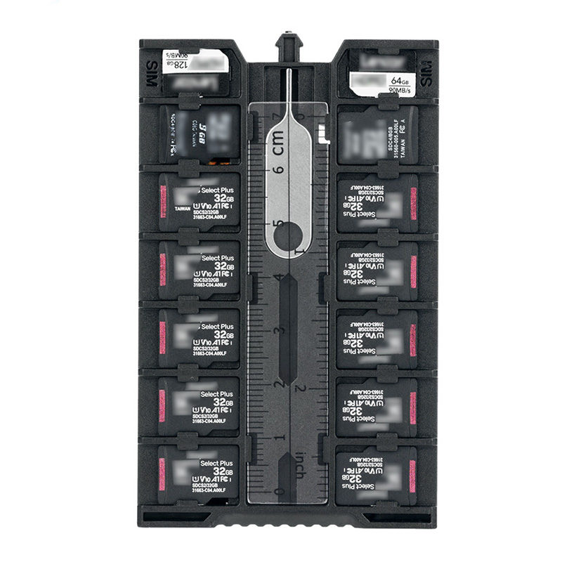 Pojme 4 karty SD, 12 karet micro SD a 2 karty nano SIM/NM
