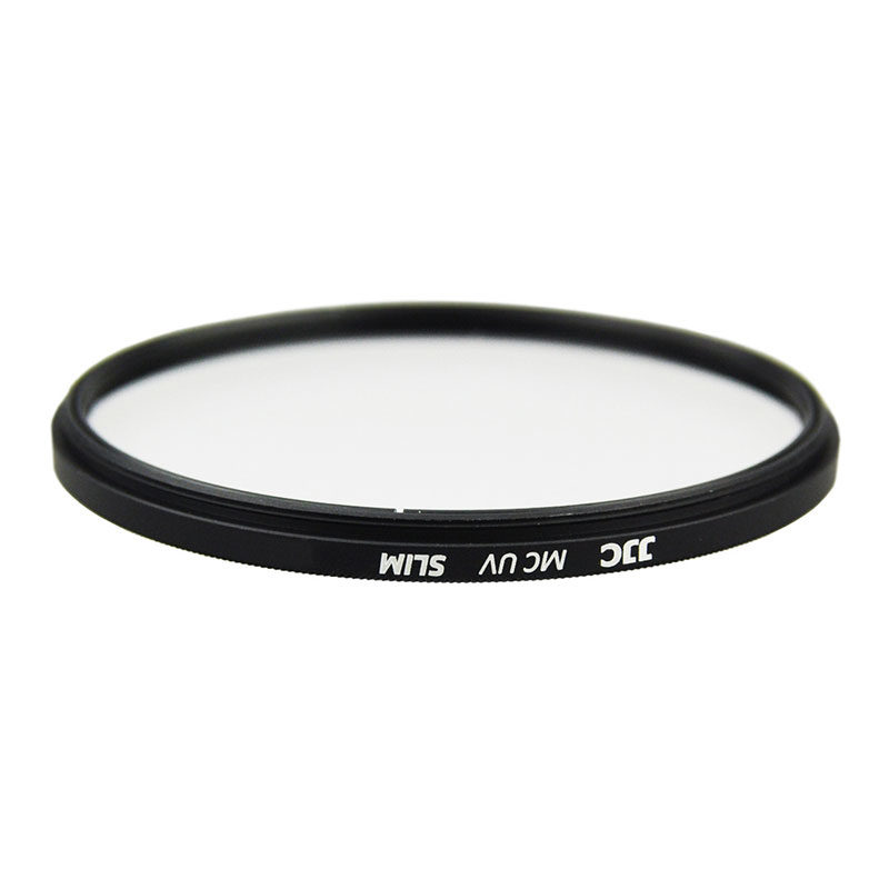 The JJC A+ F MCUV Series Ultra Slim Multi Coated UV Filter is effective to absorb ultraviolet light. The filter is designed with 6 layers of coating on each surface to reduce internal ghosting and reflections. The average light transmission is not less than 99.5%, which provides you with high color fidelity. The filter is constructed from Japanese optical glass and a precision milled aluminum frame. Hardness of the filterâs glass is up to 9HD, which provides additional protection in case of drops or situations where scratching could occur. Moreover, this filter features an incredibly slim design that the glass measures just 0.03" (0.7mm) thick, and the frame measures 0.12â (3mm) thick, helping to minimize the likelihood of vignetting. The filter also helps to reduce dust and moisture from reaching your lens element. The filter is useful as a general protective filter to leave on lenses at all times.