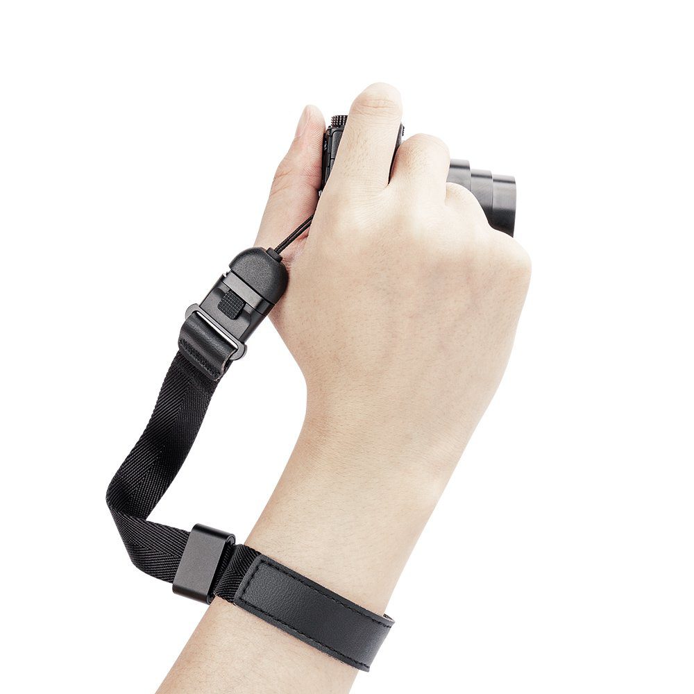 JJC WS 2 Wrist Strap je bezpečnostní zápěstní popruh navržený pro pohodlné a jisté držení fotoaparátu. Díky rychloupínacímu systému lze fotoaparát snadno a rychle připnout i odepnout. Nastavitelný anodizovaný hliníkový jezdec umožňuje přesné dotažení kolem zápěstí. Pevné poutko s nosností až 25 kg zajišťuje spolehlivou ochranu techniky při každodenním používání. Popruh je kompaktní a lze jej snadno uložit do kapsy nebo brašny.