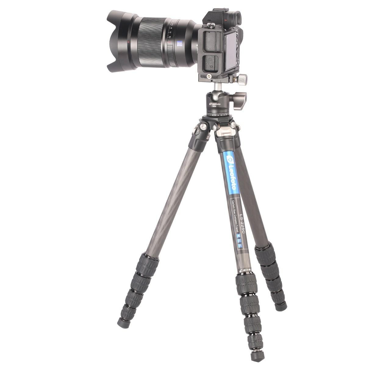 LS-225C+LH-25 to ultra kompaktowy statyw karbonowy dedykowany wymagającym fotografom lubiącym podróże. Cechą wyróżniającą go jest system APEX – nowatorska platforma statywowa. Wydrążona z aluminium lotniczego jest lekka ale dzięki anodowanej powierzchni bardzo trwała. Z boku platformy znajduje się gwint montażowy o średnicy 1/4” służący do instalacji uchwytu na smartfon, lampę lub kamerę sportową. Kolejny otwór montażowy również 1” służy do wkręcenia haka obciążającego statyw w trudnych warunkach pogodowych. Nogi przymocowane są do platformy za pomocą wałków ze stali nierdzewnej i mosiężnych tulei – materiałów które trudno spotkać w konkurencyjnych rozwiązaniach. Podstawowe dane: - nośność: 4 kg - maksymalna wysokość robocza bez kolumny: 1280mm - maksymalna wysokość robocza z kolumną: 1585mm - minimalna wysokość robocza: 125mm - długość po złożeniu: 450 mm - Waga: 0,93 kg - materiał: stop aluminium, włókno węglowe - liczba sekcji: 5