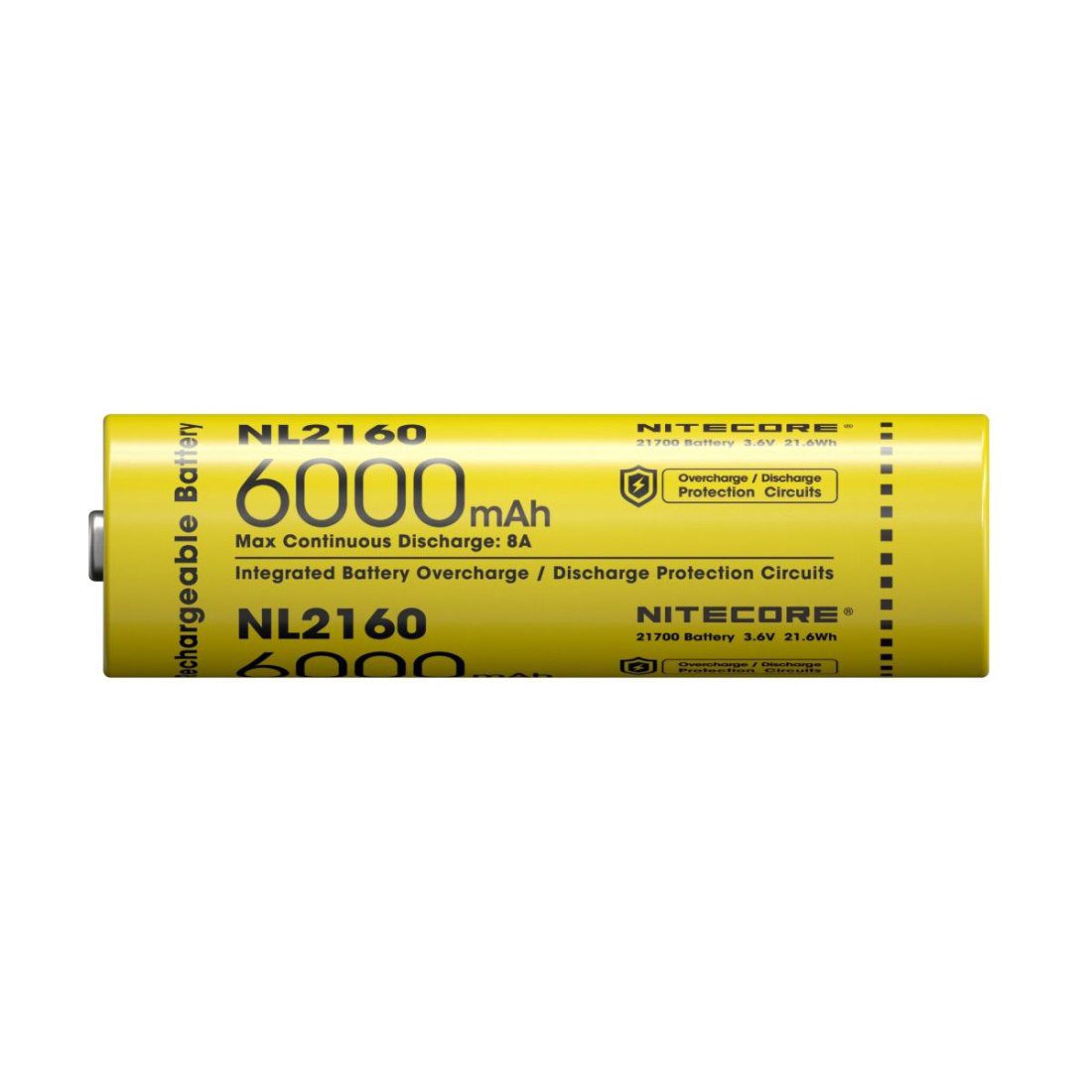 The Nitecore NL2160 (6000mAh) 21700 is a rechargeable battery with an impressive capacity of 6000mAh and an output voltage of 3.6V, suitable for various applications. With a maximum discharge current of 8A, this means the battery works well with higher powered devices such as Nitecore torches with up to 1800 lumens.