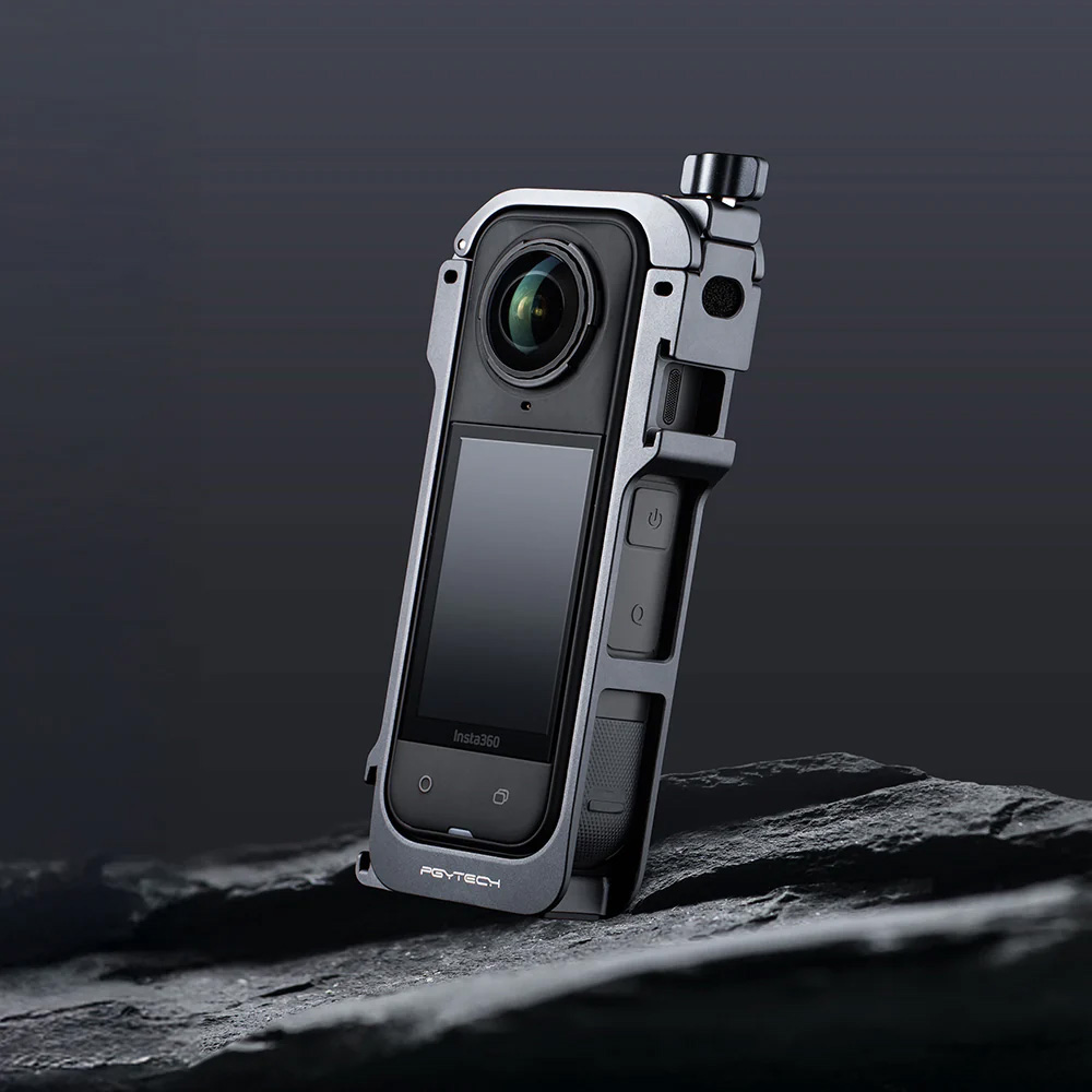 The PGYTECH Insta360 X5 Camera Cage offers sturdy protection and maximum functionality for your Insta360 X5. Made of durable aluminium alloy with a fully wrapped metal frame, this cage optimally protects your camera without impeding access to buttons, battery or microphone holes.