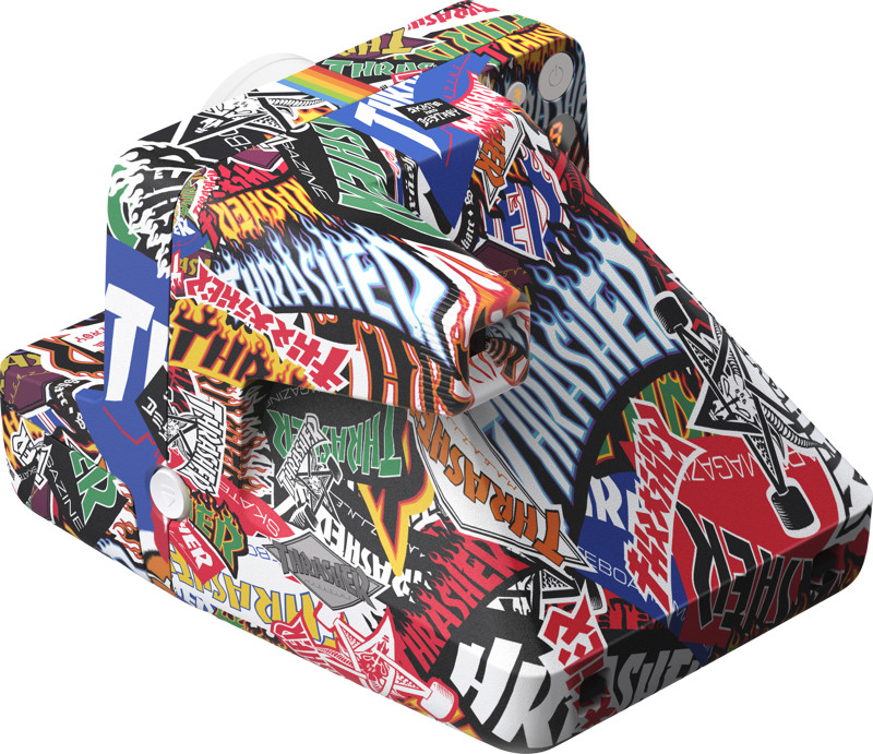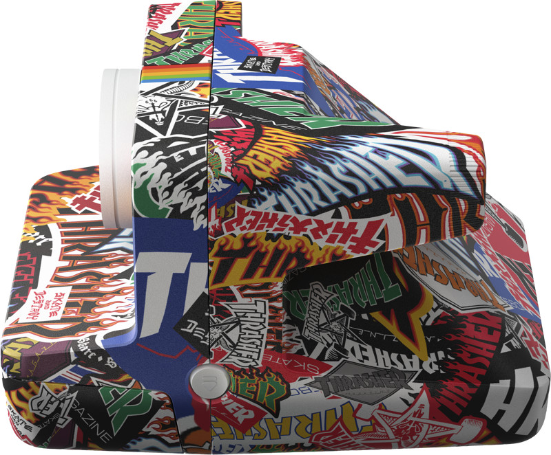 Speciální provedení jednoduchého instantního fotoaparátu Polaroid, dokončené hydro-máčecí koláží Thrasher, takže každý kus vypadá trochu jinak. Pod vlastní skořápkou se skrývá model Now Generation 3, zkonstruovaný tak, aby poskytoval ostřejší fotografie za více světelných podmínek a zároveň zachovával klasický analogový zážitek.