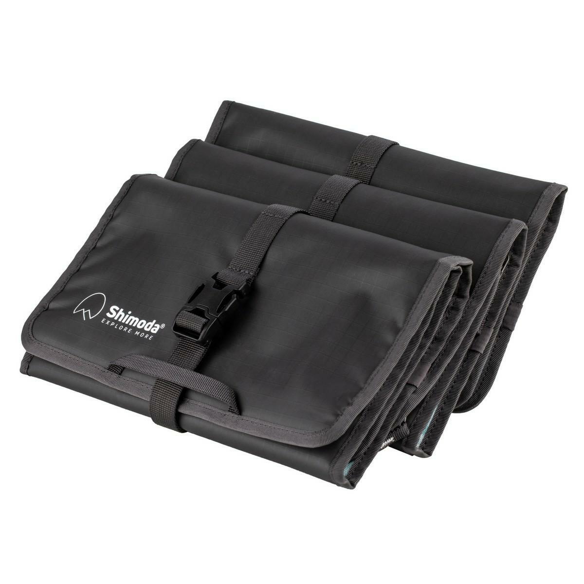 Shimoda 3 Panel Wrap je specializované pouzdro určené k bezpečnému uložení fotografického příslušenství. Otevíratelná konstrukce s průhlednými kapsami uvnitř je navržena tak, aby chránila obsah ve špatných a nepředvídatelných podmínkách. Každá kapsa je zajištěna zipem. Pomocí obsahu pouzdro můžeme položit na zem nebo zavěsit na stativ.